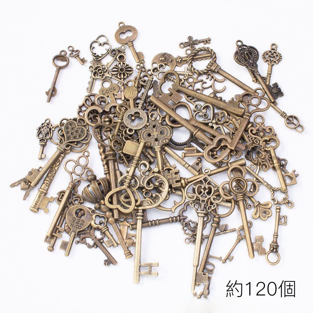 [YINKE] キー チャーム アンティーク調 スケルトンキー 鍵 DIY 金古美 ハンドメイド ハンドメイド アクセサリー 飾り レトロ 120個