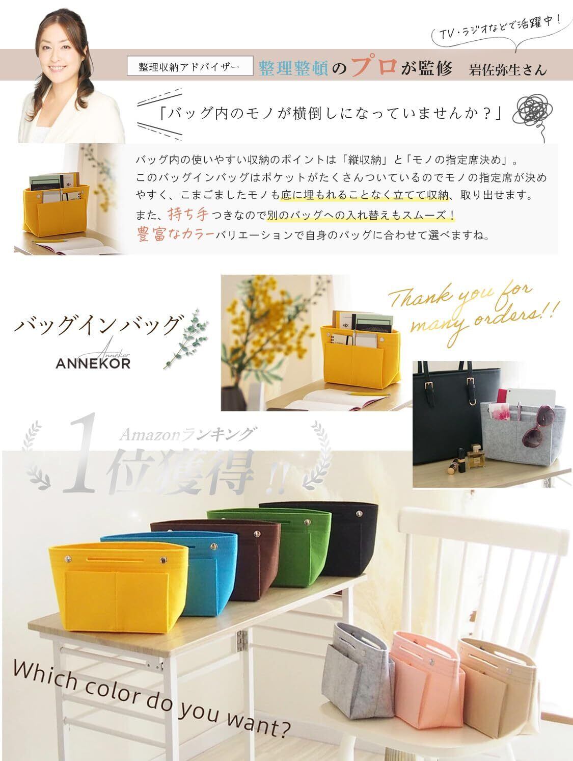 【便利な収納を実現するバッグインバッグ!】 : 「Annekor バッグインバッグ」は、収納のプロが監修したデザインで、あなたのバッグを整理整頓することができます。底板付きで自立可能、ペンホルダーも備えているので、文房具や小物をスマートに整理できます!
