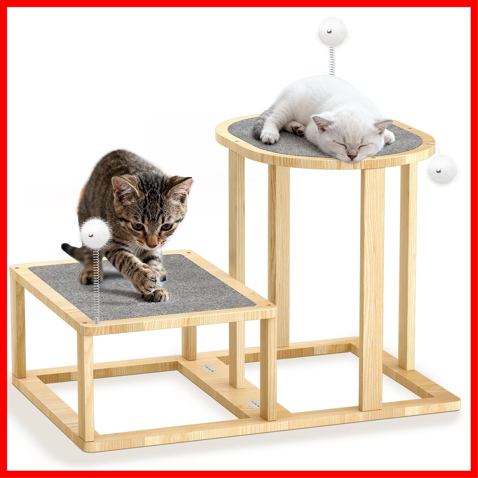 キャットタワー 木製 猫 爪研ぎ ベッド Pawaboo つめとぎ 猫 じゃらし付き 爪研ぎベッド 多機能 小型 猫 ベッド 低め ペットステップ 木製 2段 猫爪とぎ ミニ 省スペース ねこベッド 組立簡単 安定性 登りやすい 子猫 老猫 原木色 | hananoki