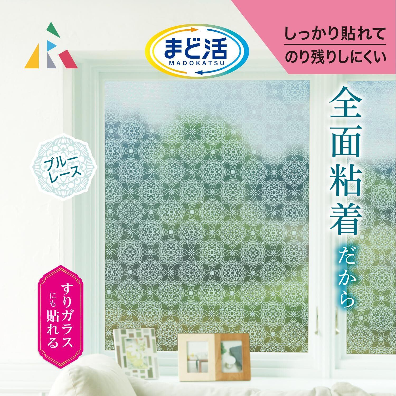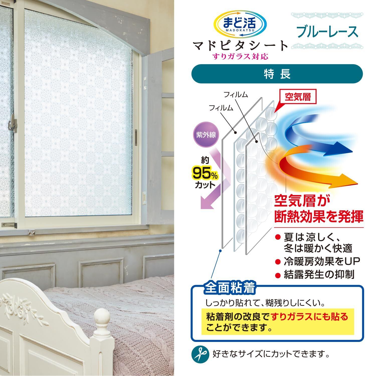 アール(R) マドピタシートすりガラス対応 断熱シート まど活 ブルーレース 90×180(cm) 紫外線約95%カット 防虫効力 カット可能 H-154