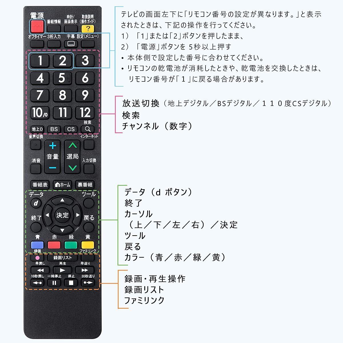 【操作簡単】ボタンの文字は従来品より分かりやすく、快適的な操作を実現します。単4電池を2本入れただけで使えるアクオスリモコンである(電池は別売り)