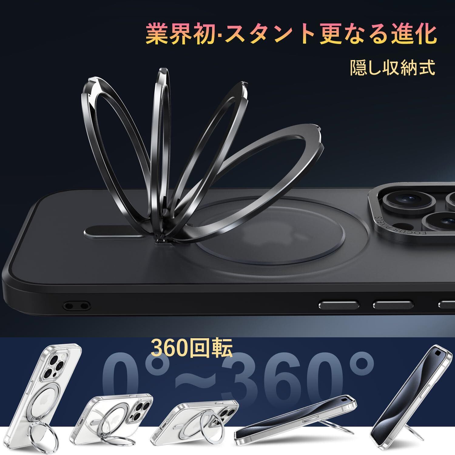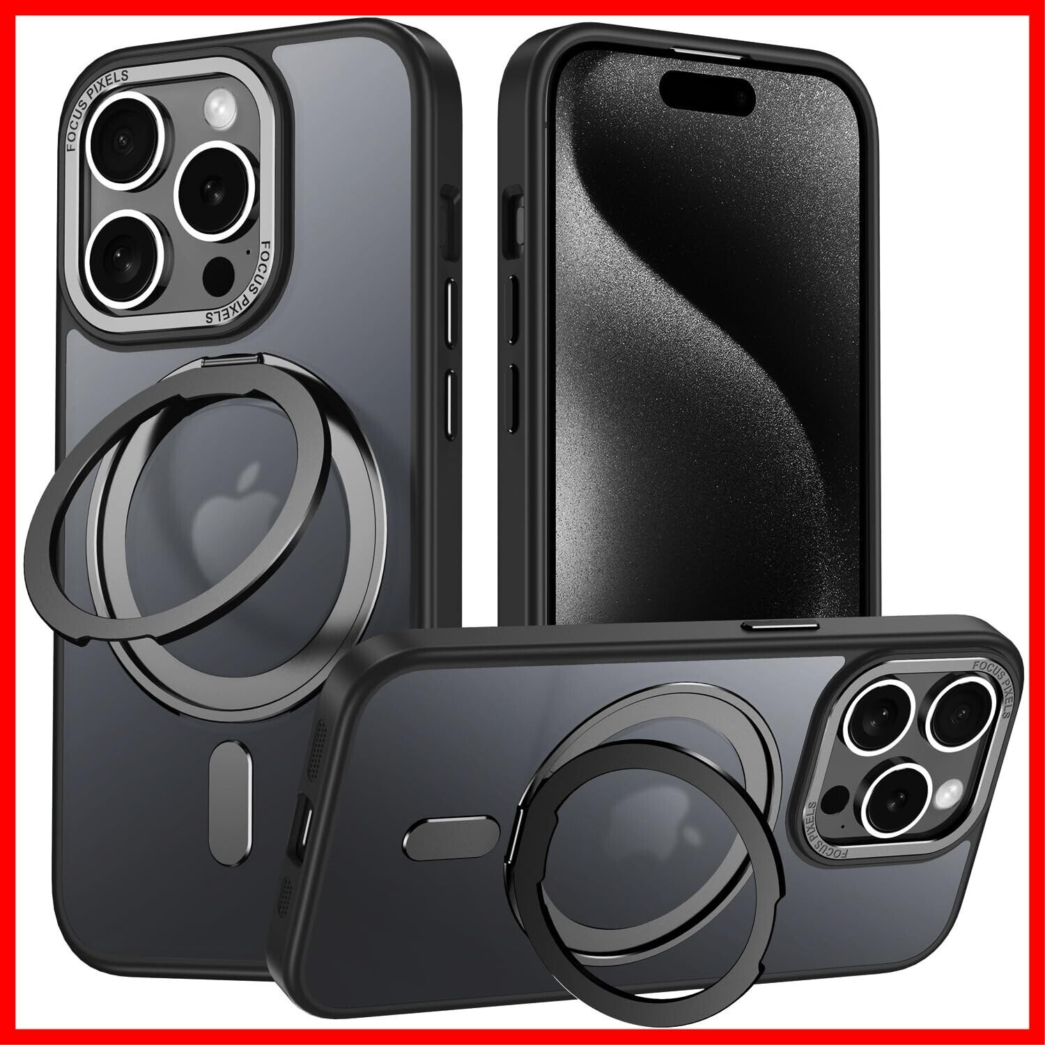 iPhone 11 Pro 用 ケース Magsafe対応 アイフォン11プロ カバー 360度回転スタンド 縦横両対応 Uovon スマホケース アイホン11pro 携帯ケース ワイヤレス充電 車載ホルダー対応 ストラップ穴付き 半透明 指紋防止 黄变防止 ・ ブラック
