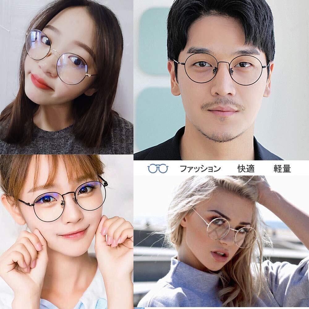 Dollger ブルーライトカットメガネ だてめがね メンズ オシャレ 伊達メガネ 18g 丸メガネ uvカットメガネ 度なし メガネ