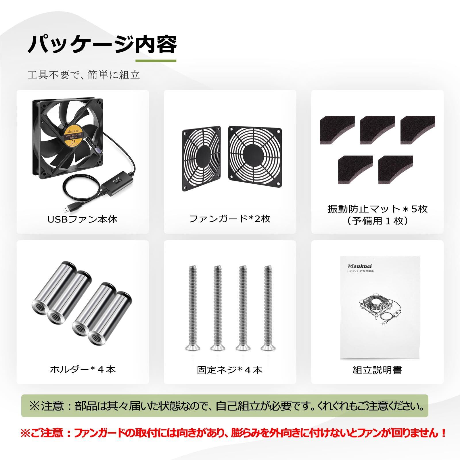 Mauknci 冷却ファン 12cm 静音 風量調整可 USB ファン 5V 長時間稼働 小型PC/アンプ/ルーターなど用 冷却台