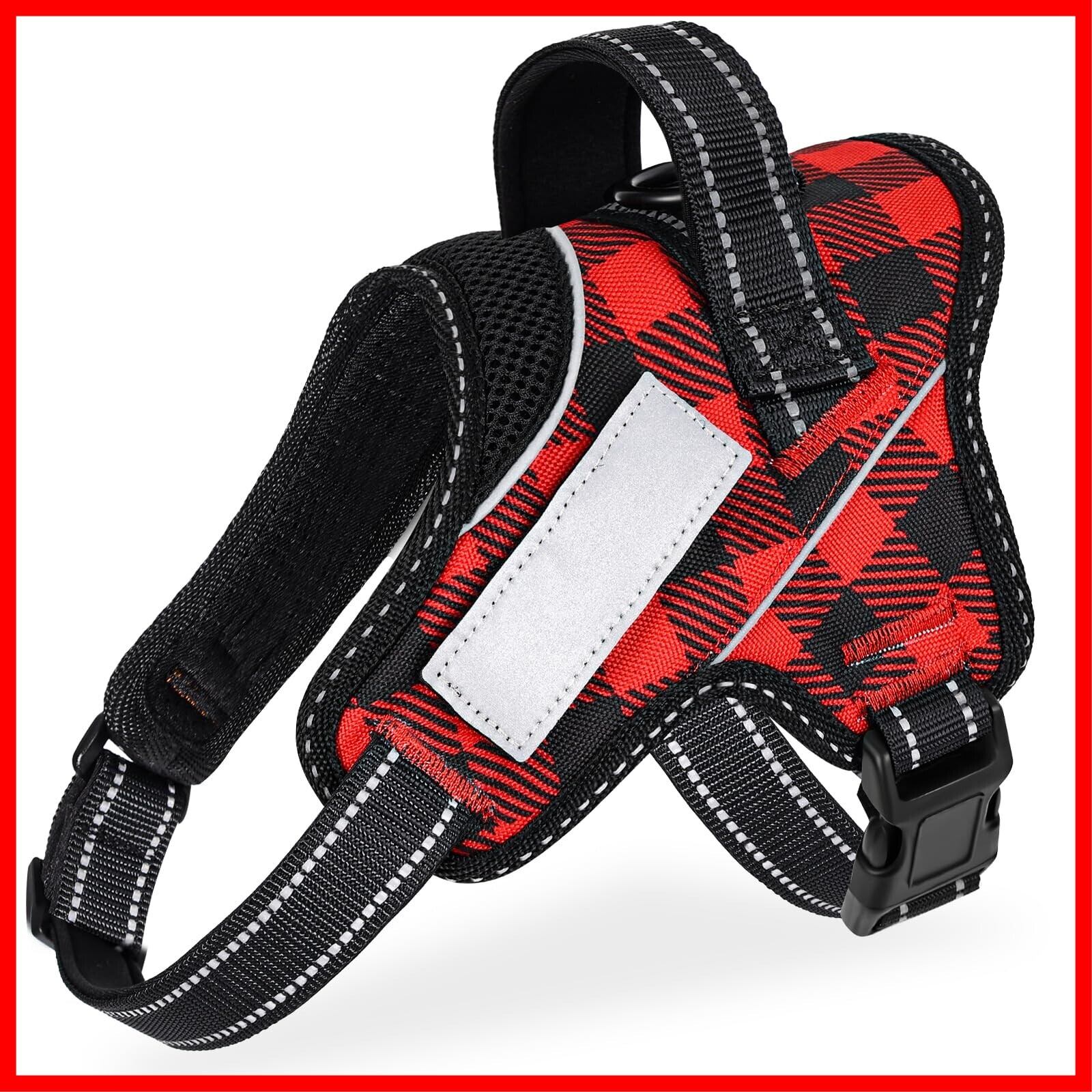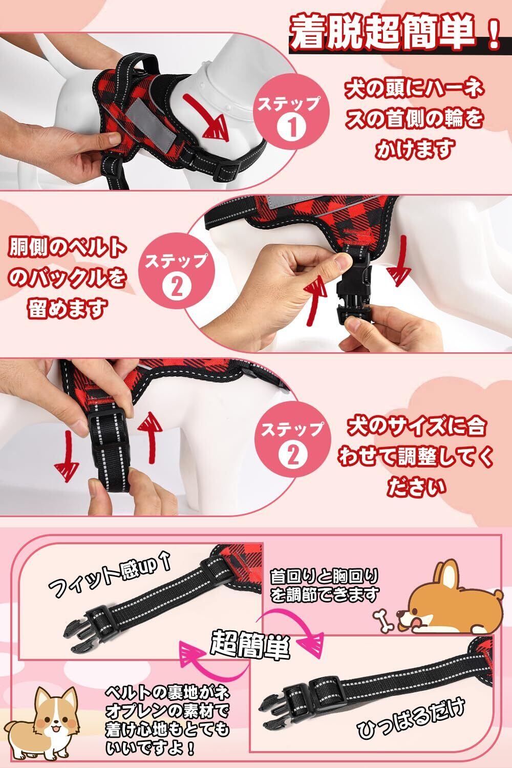【ドッグトレーナー推薦】OGURIYA犬 ハーネス 喉に優しい 小型犬 中型犬 大型犬 着脱簡単 超可愛い色 ネームプレート 夜間反射 サイズ調整可能 犬体工学に基づいた 7色選択(赤黒チェック柄,M)