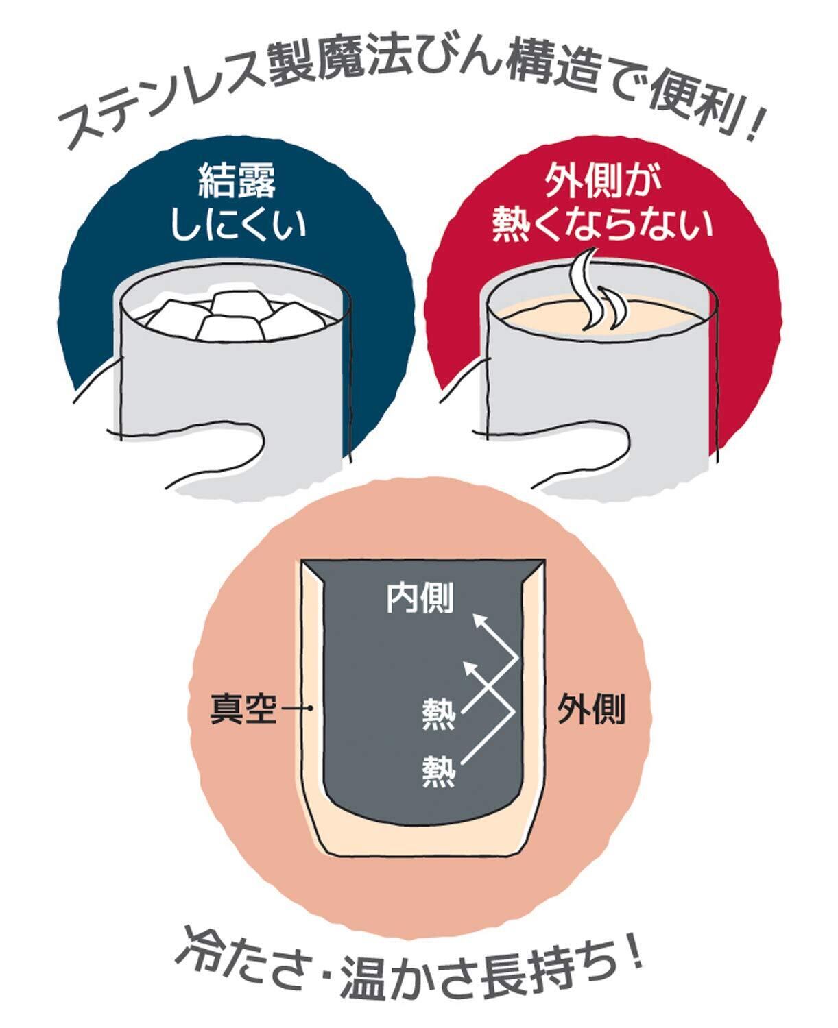 ●ステンレス製魔法びん構造なので、冷たさ・温かさ長持ち。