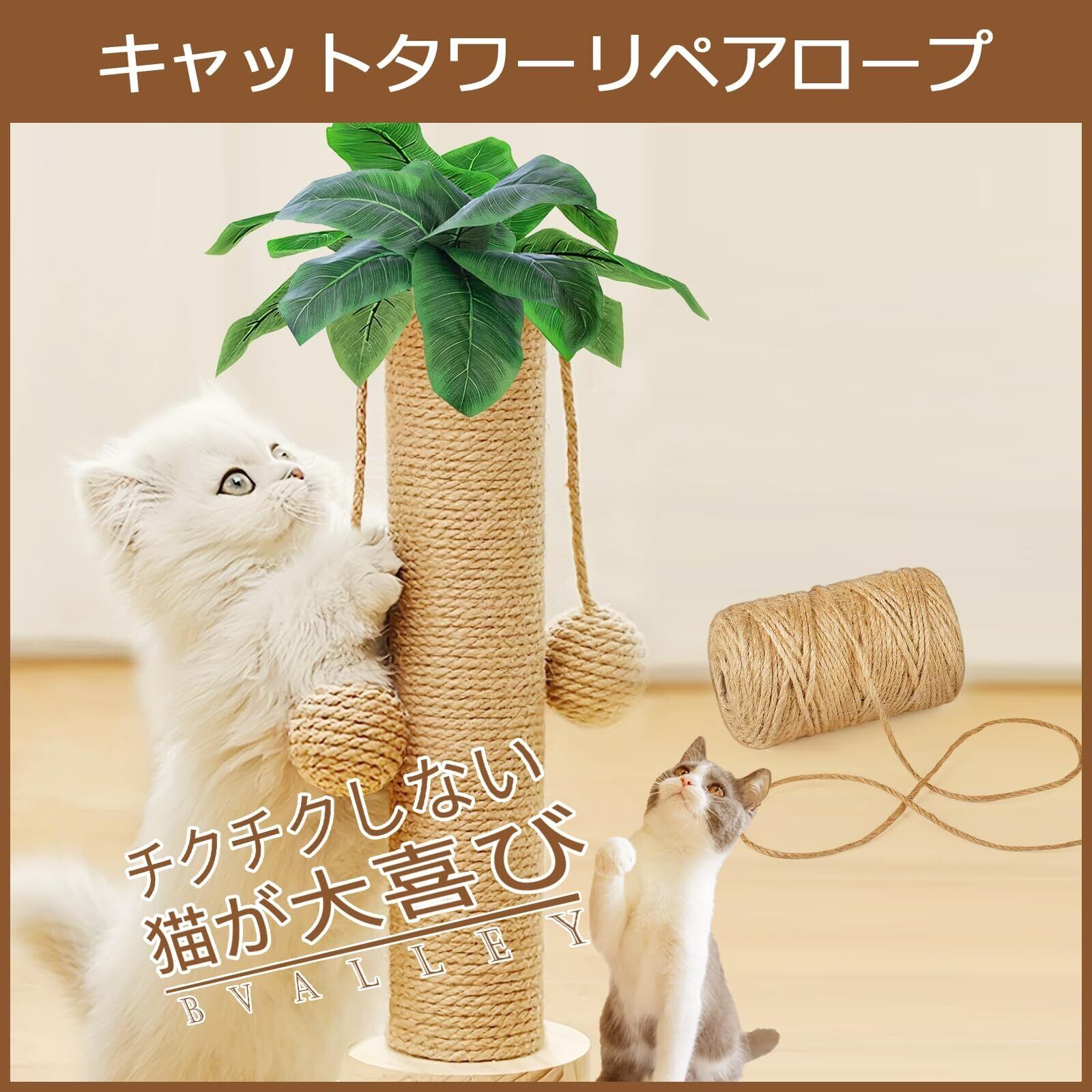 BValley 6mm x 60M 麻ロープ 麻縄 麻紐 天然繊維 麻ひも リペアロープ 猫タワー スクラッチャー 爪研ぎ 園芸 手芸 DIY アウトドア 梱包,麻縄はボロボロになったキャットタワーの爪とぎ場所が補修できます。園芸DIY、花瓶、壁飾り、手芸や飾りに適しています。家のテーブルやソファーの足、水道管、角柱、階段手すりなどの家具に巻きられて、引っかかれるを防ぐ効果があり、家具などを保護できます。