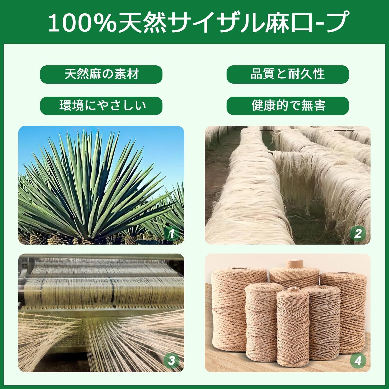 【天然素材】天然麻を採用して作られた麻ひもは環境に優しくて非毒性で分解できて、摩耗性が優れます、ペットと子供がいる家庭も安心にお使えます。天然麻素材は丈夫、100%品質合格で再利用も可能です。