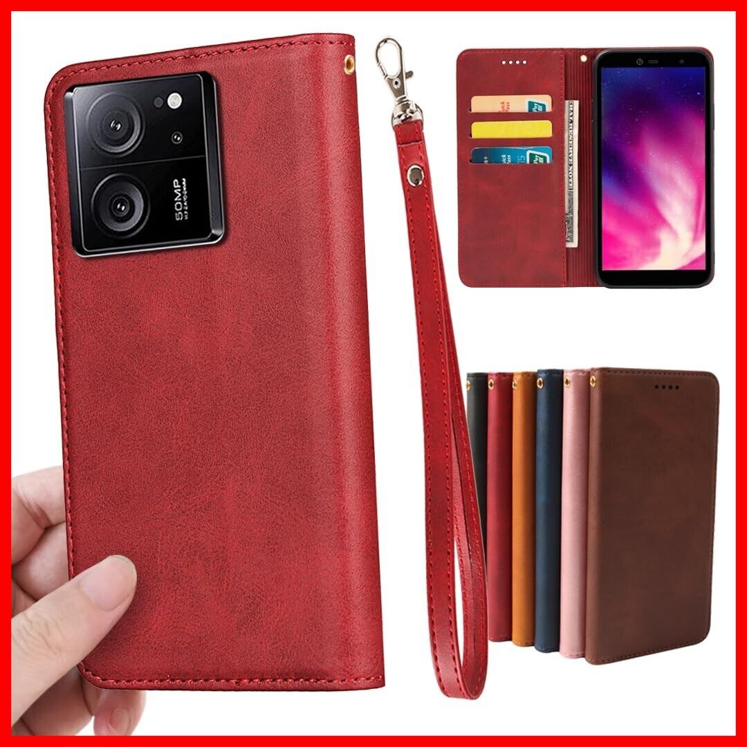 Xiaomi 13T XIG04 ケース 手帳型 適用 Xiaomi 13T Pro 手帳型ケース シャオミ 13T プロ カバー 手帳 Xiaomi13TPro 手帳カバー シャオミ13T スマホケース Xiaomi13TProケース シャオミ13Tプロ手帳ケース 【GoKIGIoD】 財布型 内蔵マグネット 弱磁 カード収納 ストラップホール スタンド機能 耐衝撃 レトロ レッド
