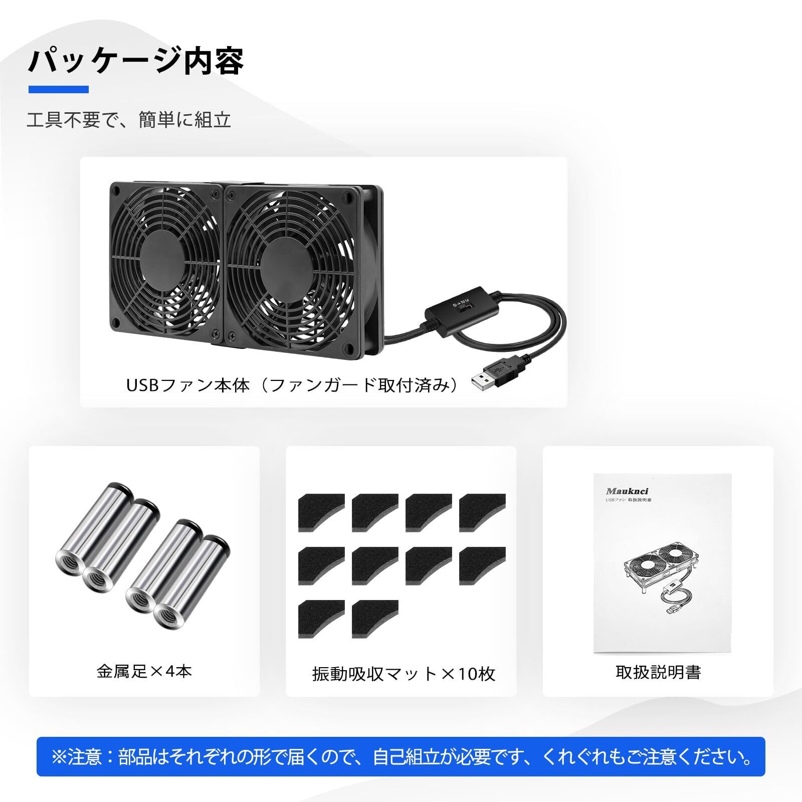 Mauknci USB 冷却 ファン 12cm 2個1組 スピード調整 5V ミニファン 小型PC ゲーム機 ルーターなど用 冷却 ふぁん (組立要)