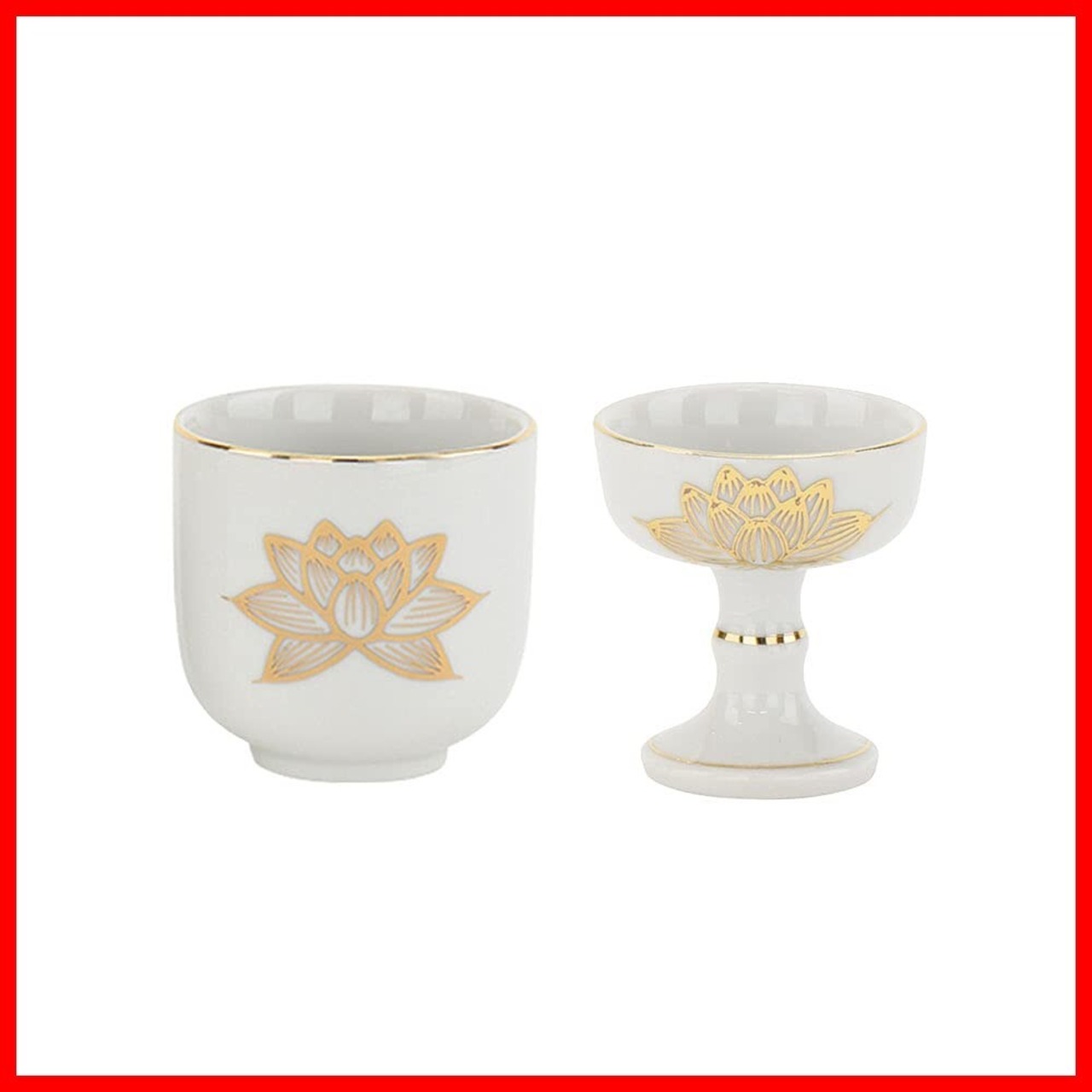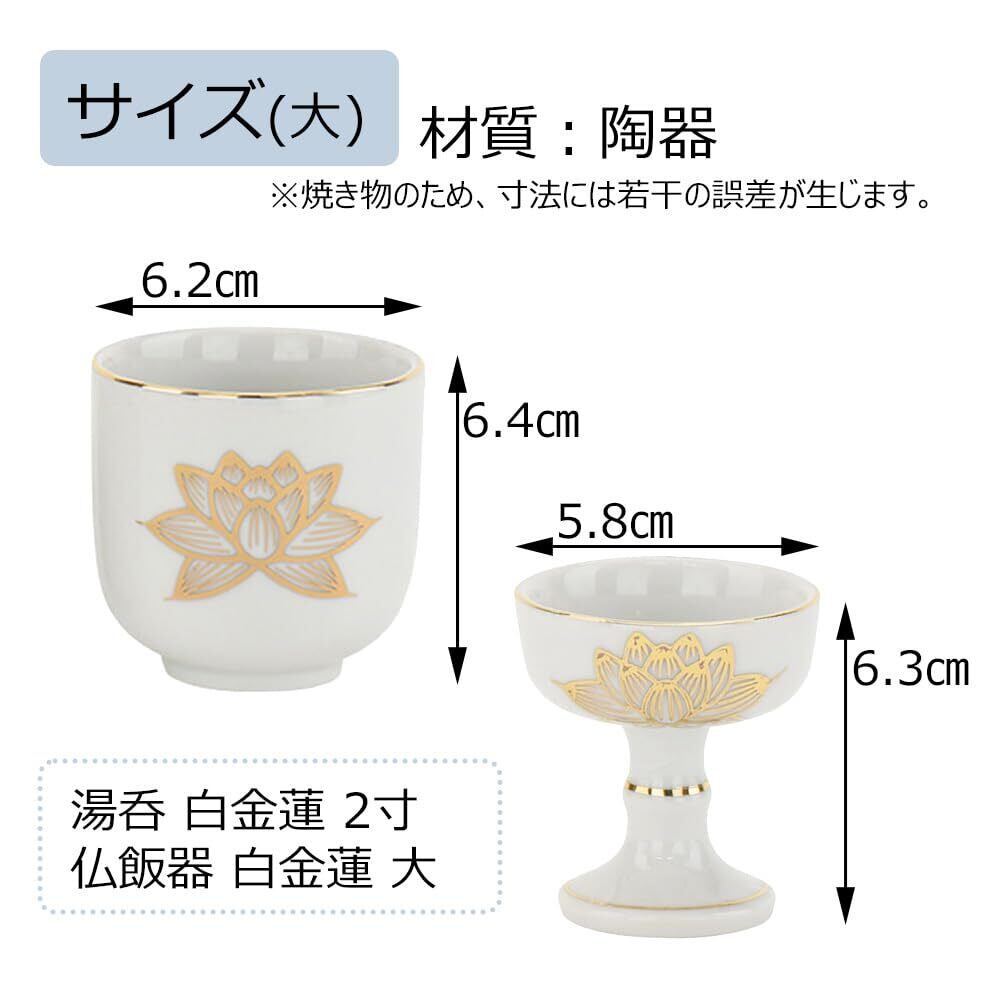 お仏壇のはせがわ 仏飯器 湯呑 仏具セット 2個セット (白金蓮/大) 日本製 仏飯 仏器 湯呑み (白/金蓮柄) 仏壇 仏具 仏壇用品