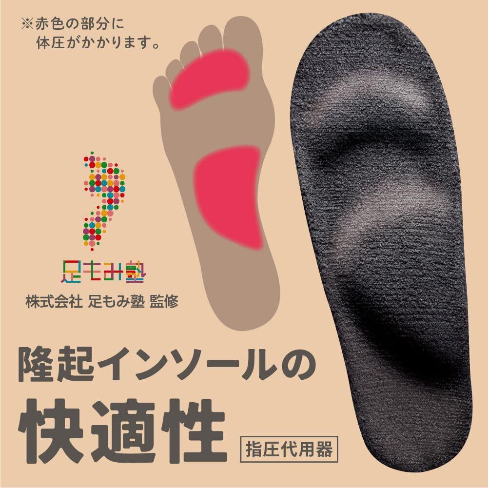 特別設計の隆起インソールが足裏をしっかりと支え、血行を促進。長時間の使用でも快適さが持続します。