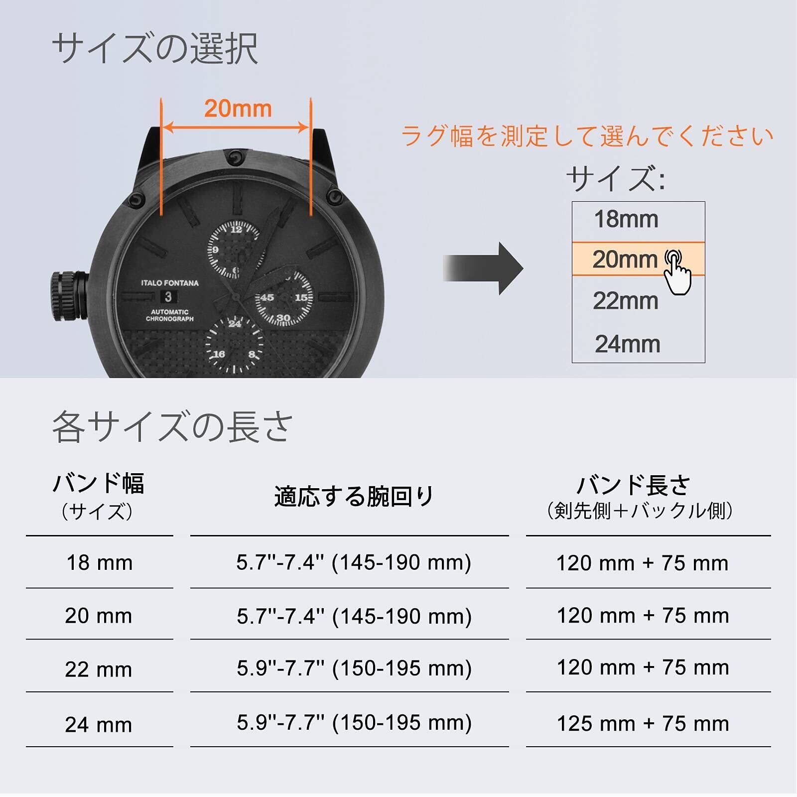 この時計バンドは幅24mm のバネ棒(スプリングバー)を使う伝統的な腕時計やスマートウォッチに適用します。注文する前に腕時計ダイヤルのラグ幅をご確認ください。