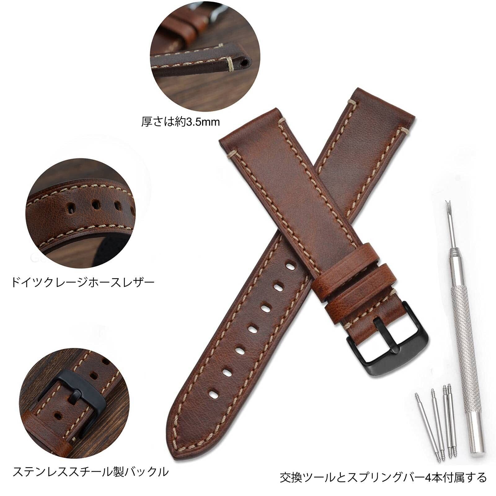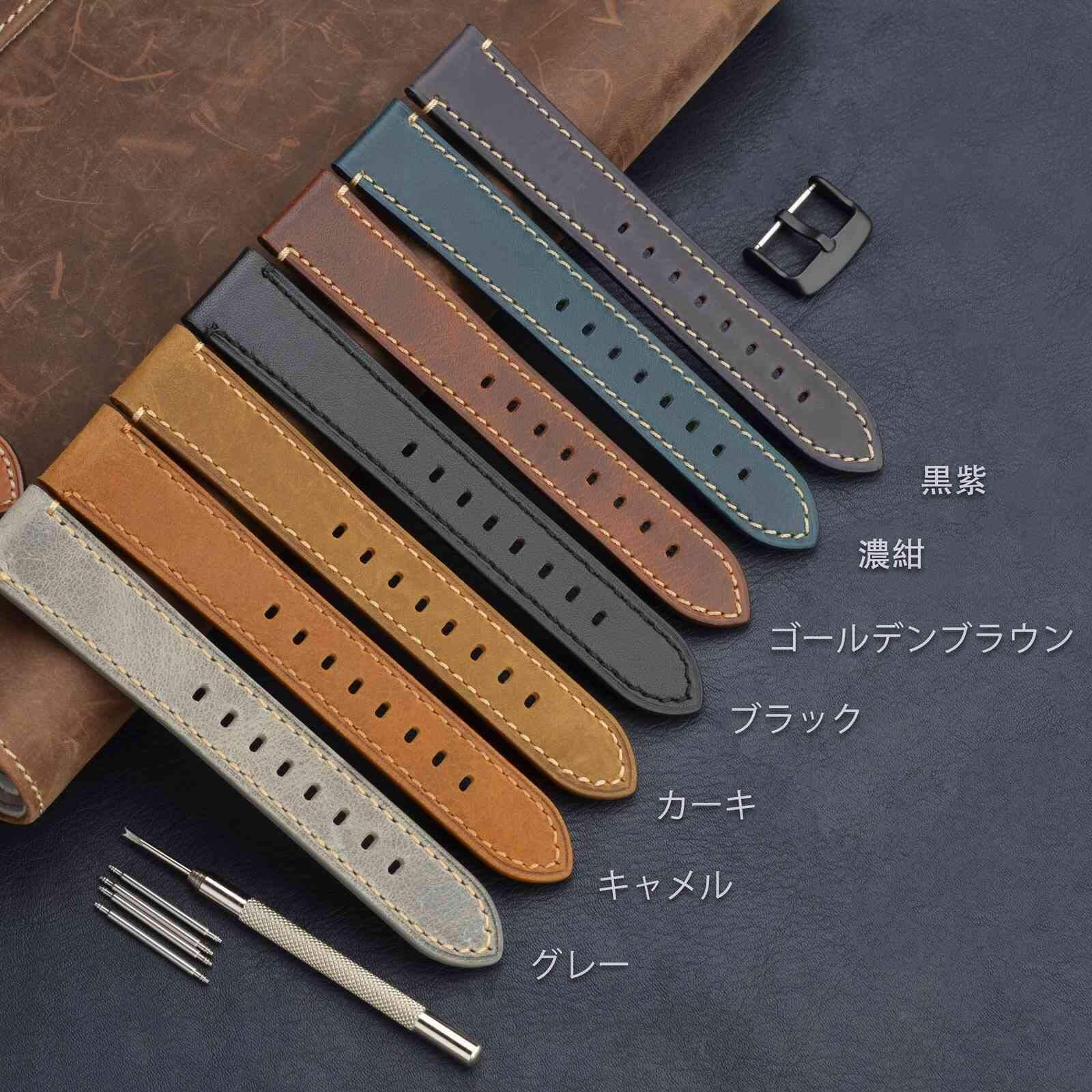 [WOCCI]時計ベルト18mm 20mm 22mm 24mm替えベルト レトロ本革腕時計バンド