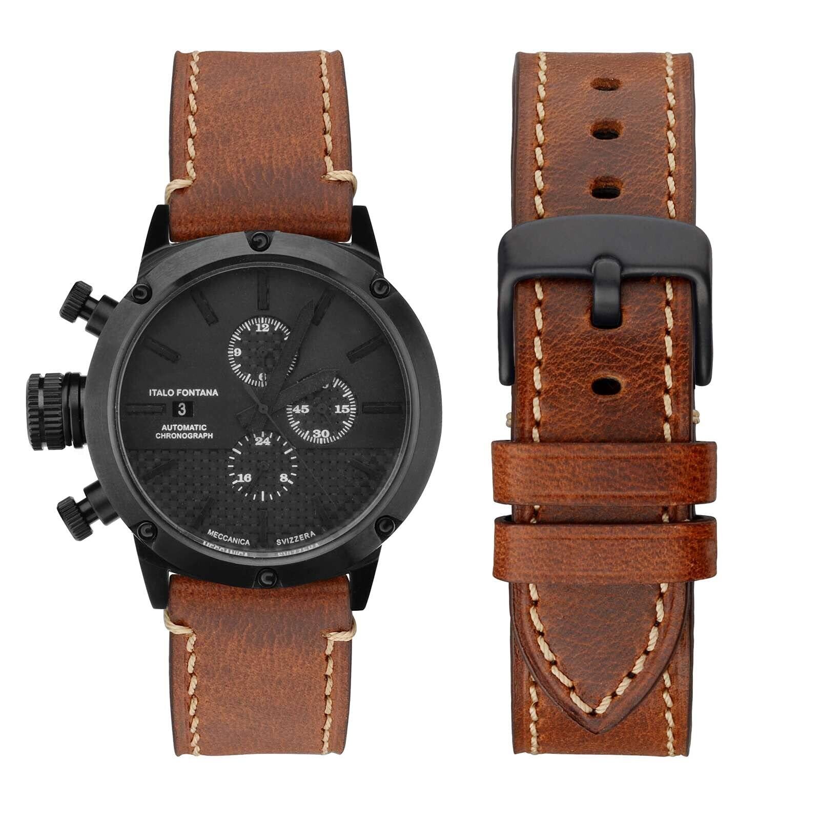 高品質なクレージーホースレザー(crazy hose leather)を使用しています。自然な状態では茶色になってますが、ベルトを曲げると本革特有な筋が出てきます。ステッチされていて頑丈で耐久性があり、質感、縫製が優良な復古風腕時計ベルトです。