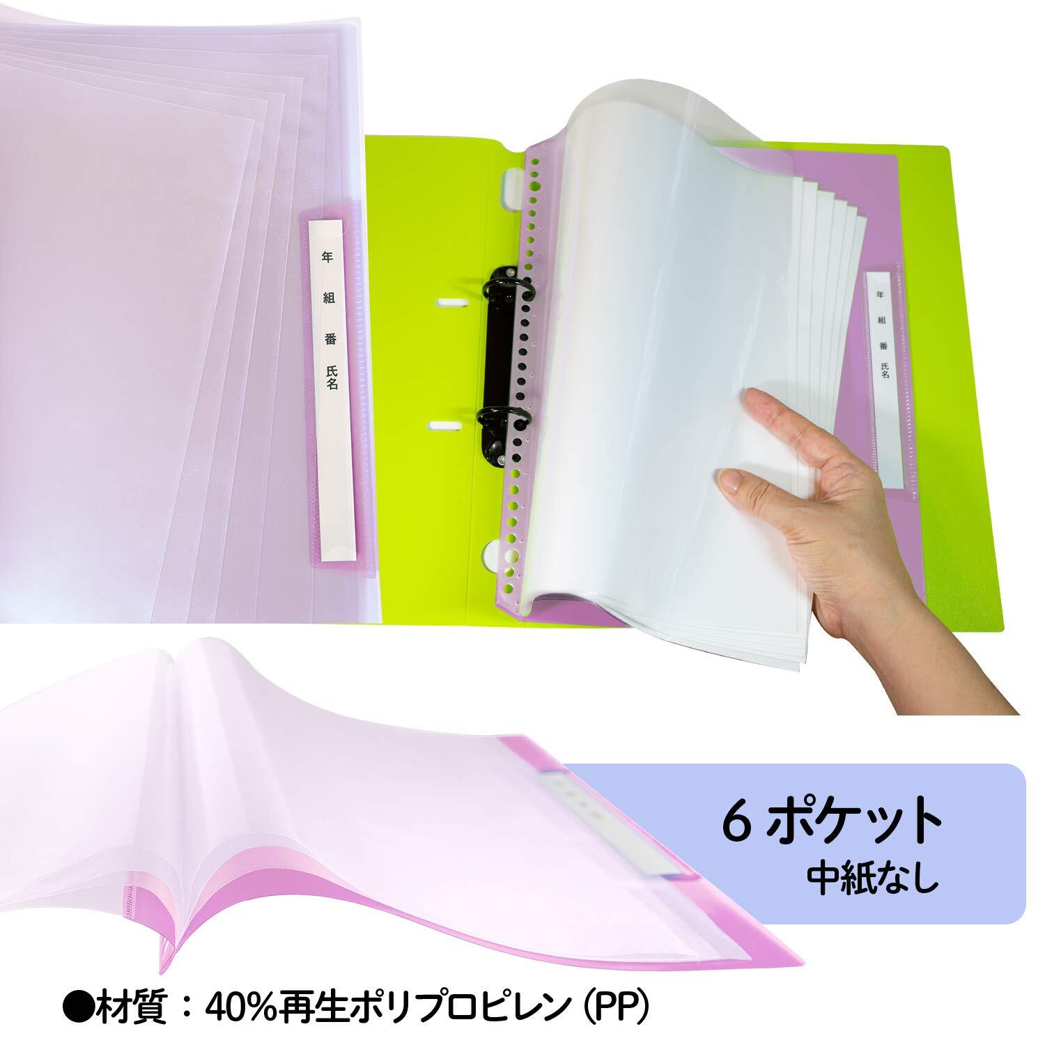 2・4・30穴共有のリフィール式、タテ入れ6ポケットタイプのクリアファイル。