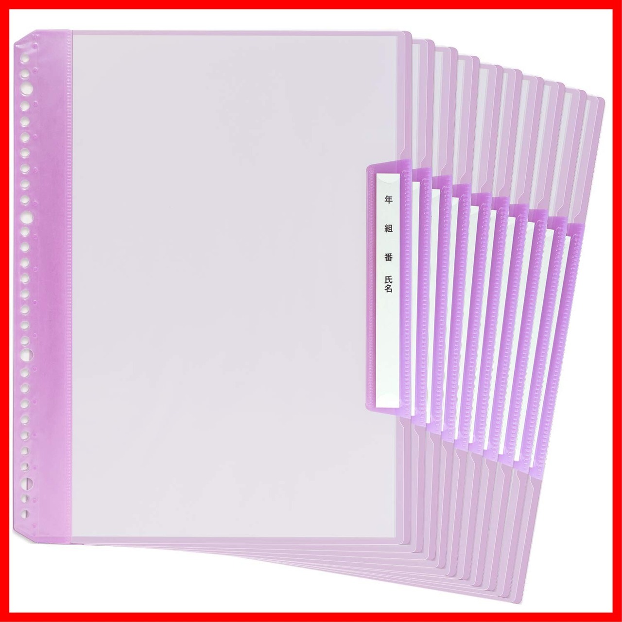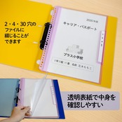 ・透明表紙で中身を確認しやすく、2・4・30穴のファイルに綴じて管理することができます。