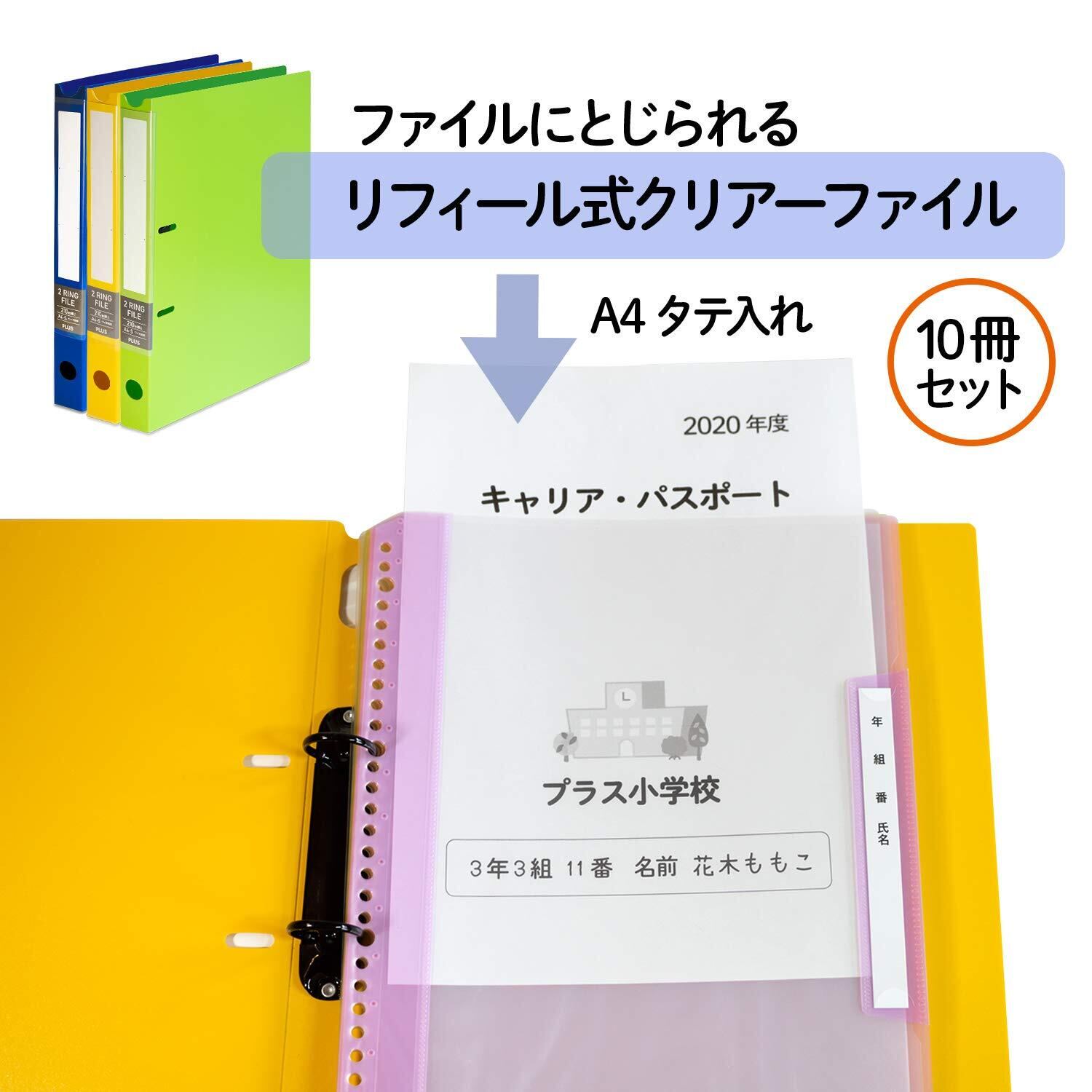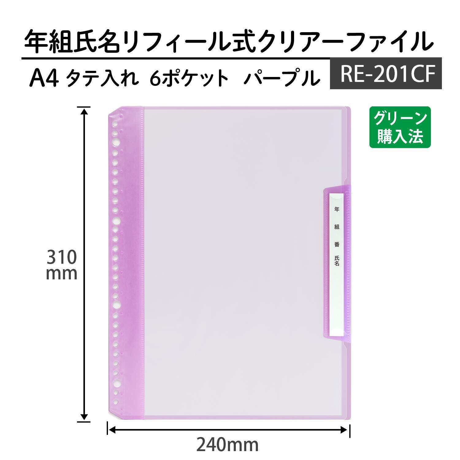 プラス 年組氏名リフィール式クリアーファイル 縦入 6ポケット A4 パープル 84-822×10冊
