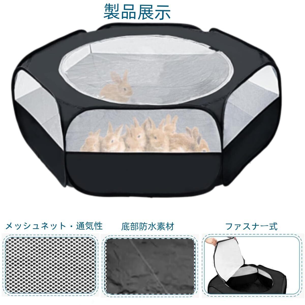 [YFFSFDC] ペット プレイ サークル 小動物フェンス アウトドア/室内 遊び用のサークル 折り畳式 小動物 メッシュ ケージフェンスペット ゲージ 収納簡単 軽量 脱走防止 袋付き (ブラック)120cm | hananoki
