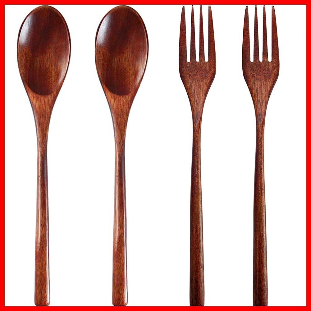 AOOSY カトラリー スプーン フォーク 4点セット 通勤用食器セット 弁当用 携帯便利 学生用 天然木製ディナーセット