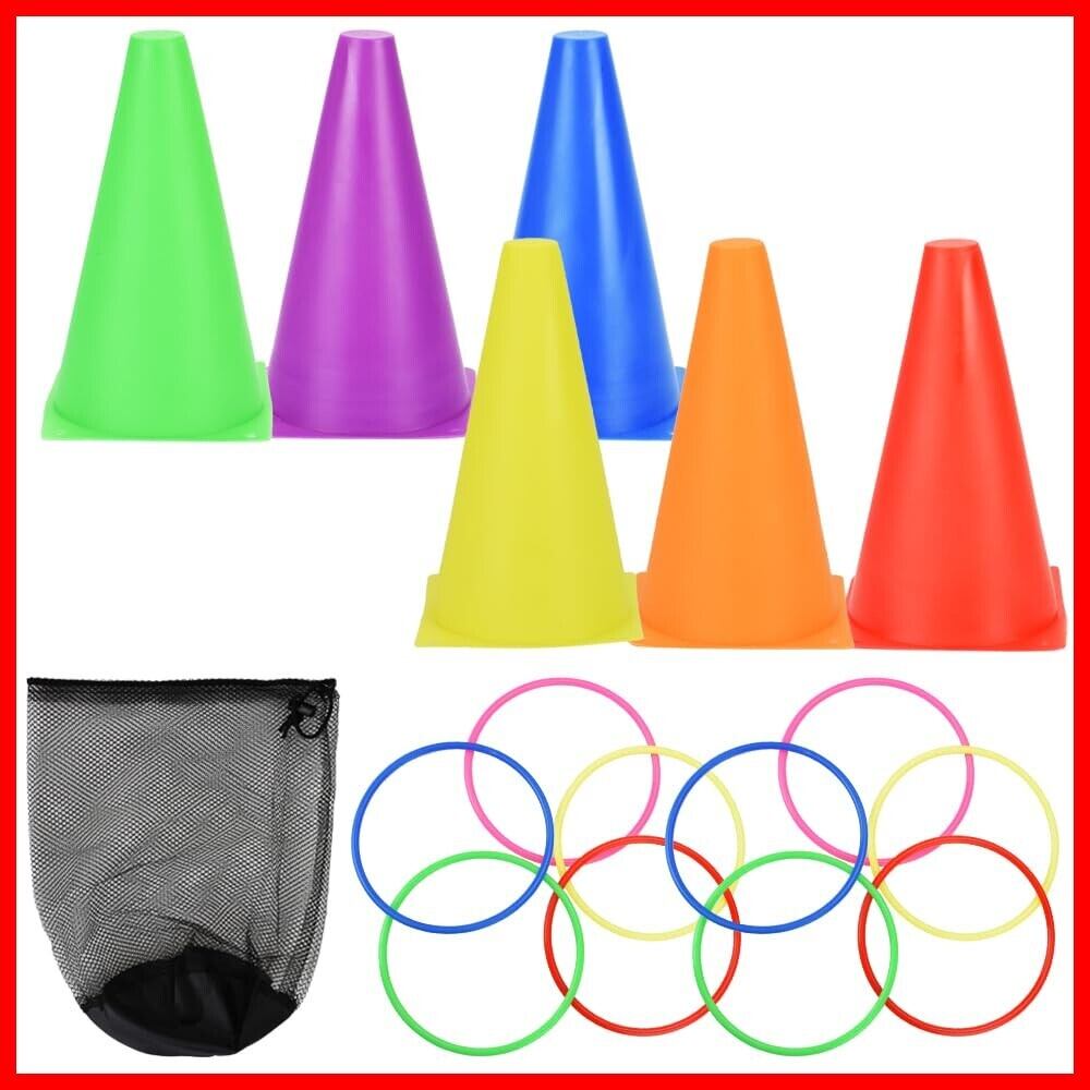 【セット内容】リング×10点 コーン×6点 収納袋×1点 【サイズ(約)】リング:内径16cm コーン:13.5cm×23cm 【カラー】※リングとコーンのカラーはランダムです。