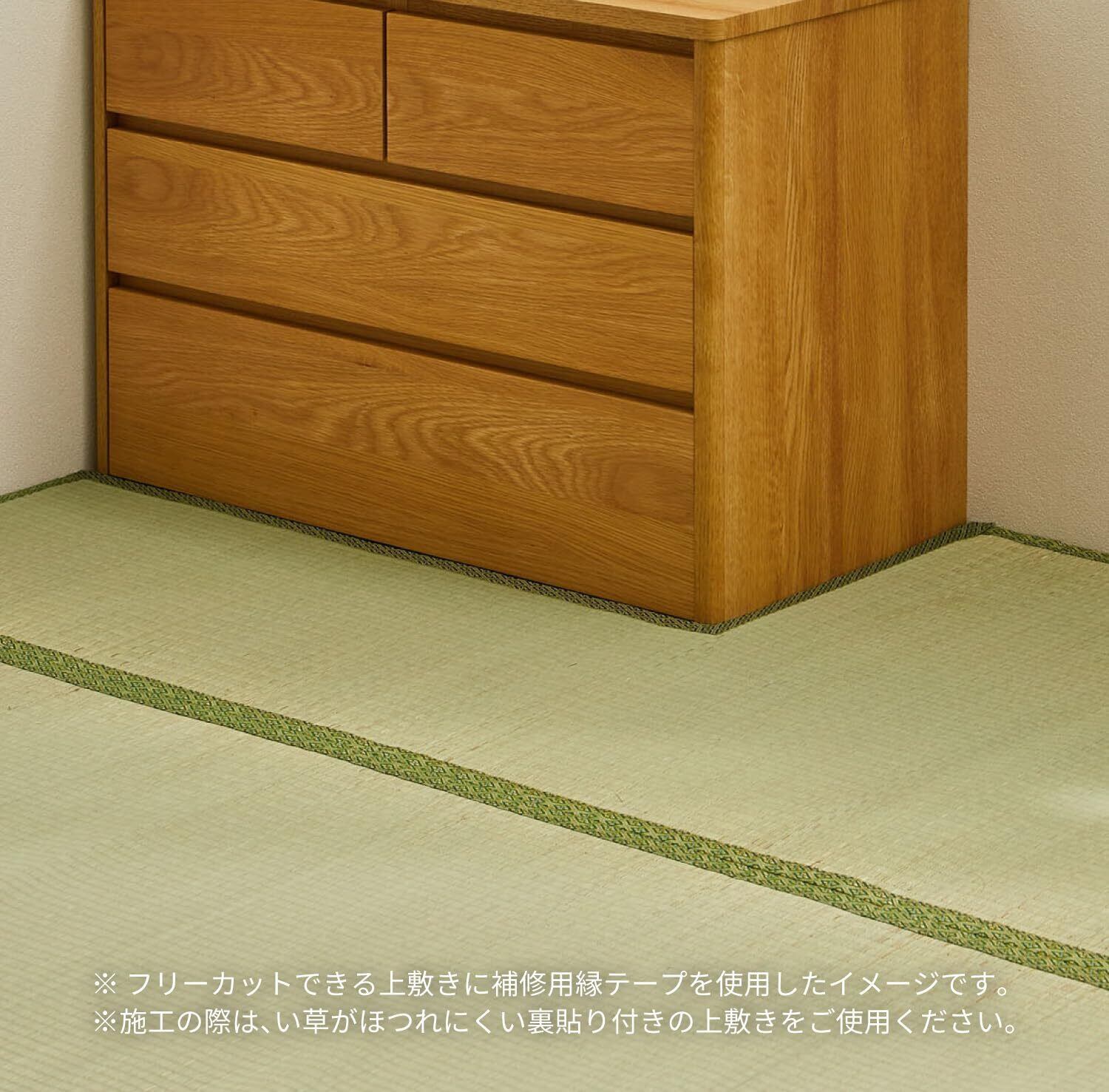 縁の補修テープです。テープ式なので面倒な縫製や糊付けは不要です。フリーカットできる上敷きの補修などにお使いいただけます。