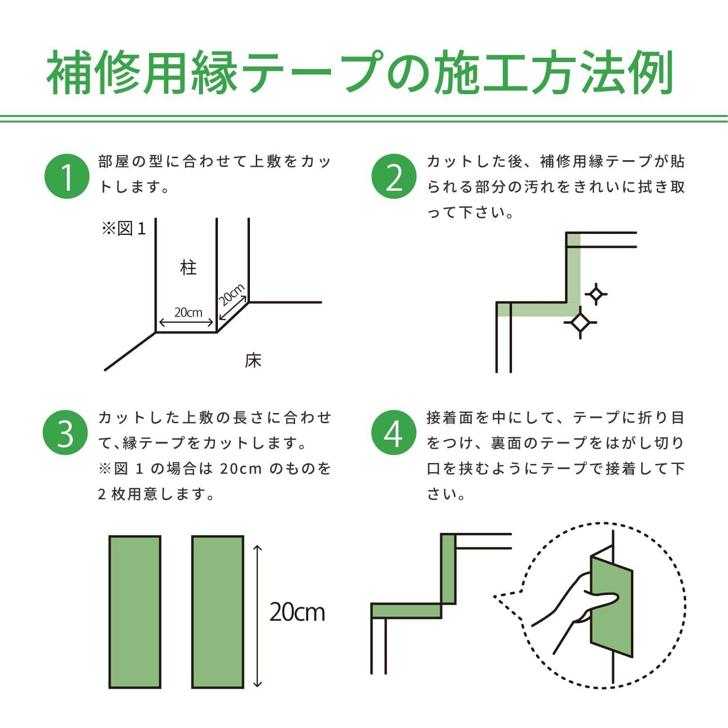 カットした上敷きの部分に貼るだけで、カットしたところを隠すことができます。