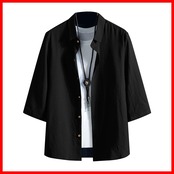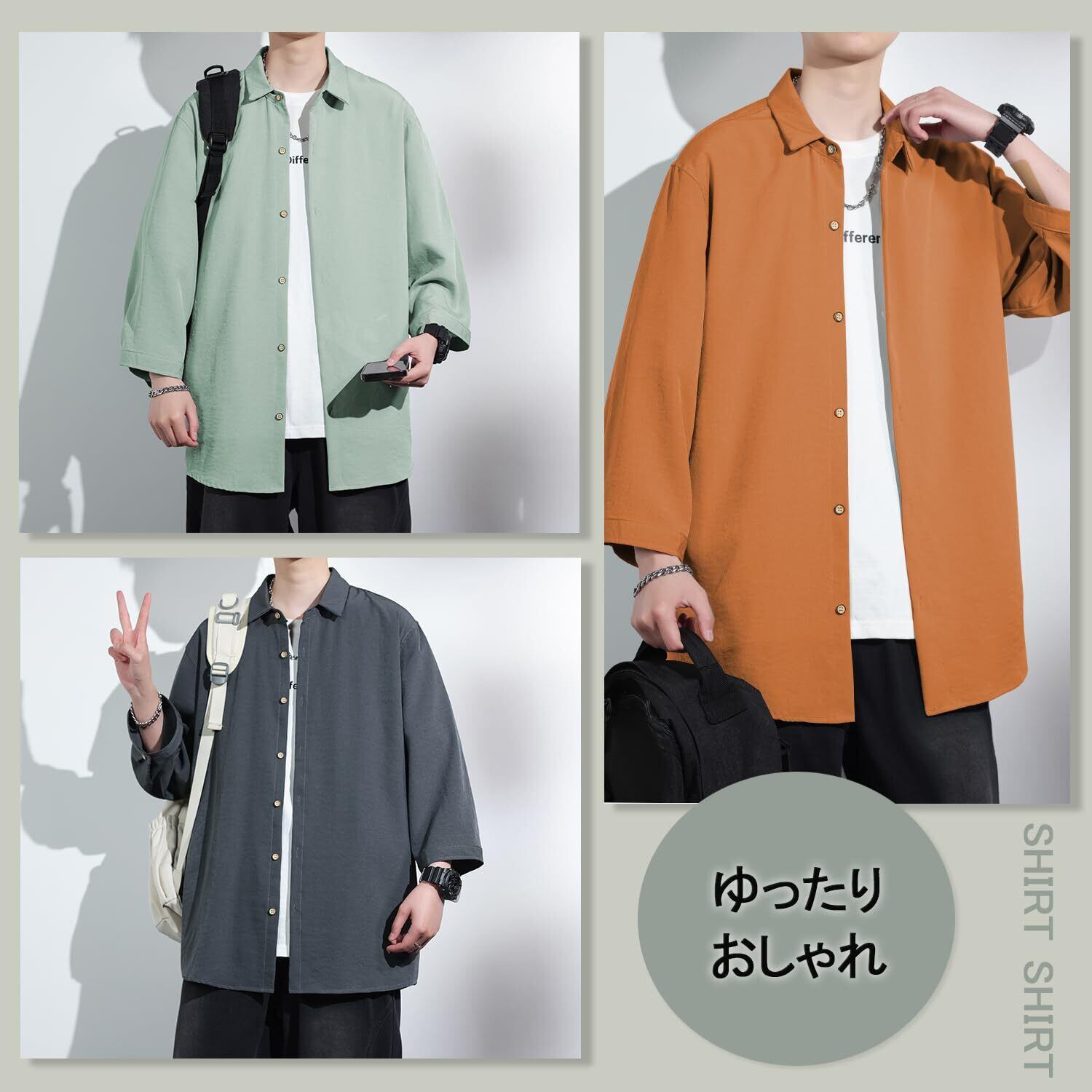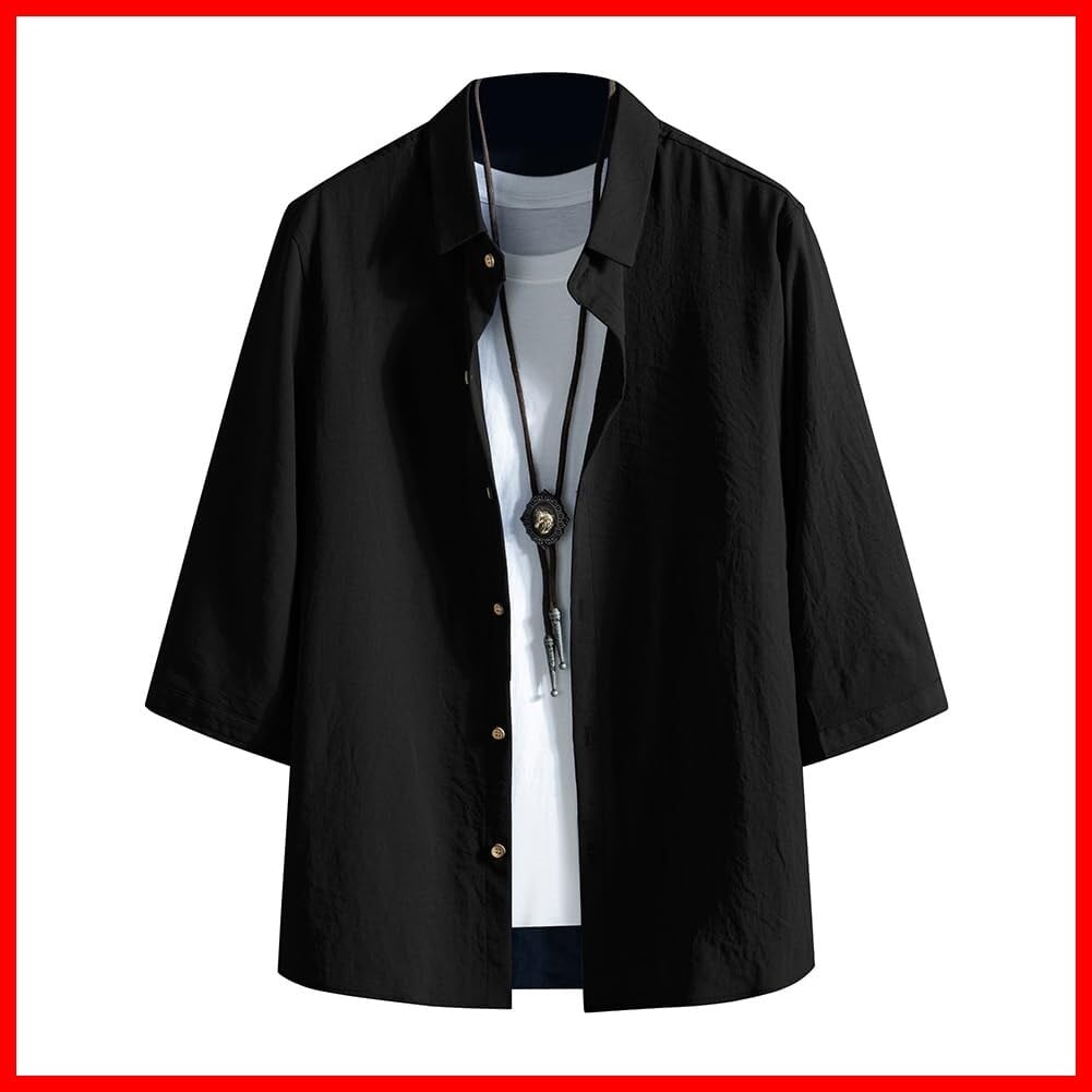[FUZHIHUA] シャツ メンズ 七分袖 夏服 半袖 おしゃれ カジュアル ゆったり 無地 大きいサイズ カジュアルシャツ お洒落 トップス 軽い 通気 柔らかい 人気 服