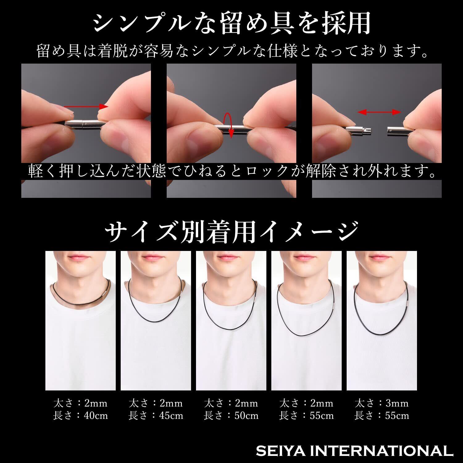 [SEIYA INTERNATIONAL] 紐 ネックレス メンズ チェーン チョーカー ワックスコード ステンレス アクセサリー