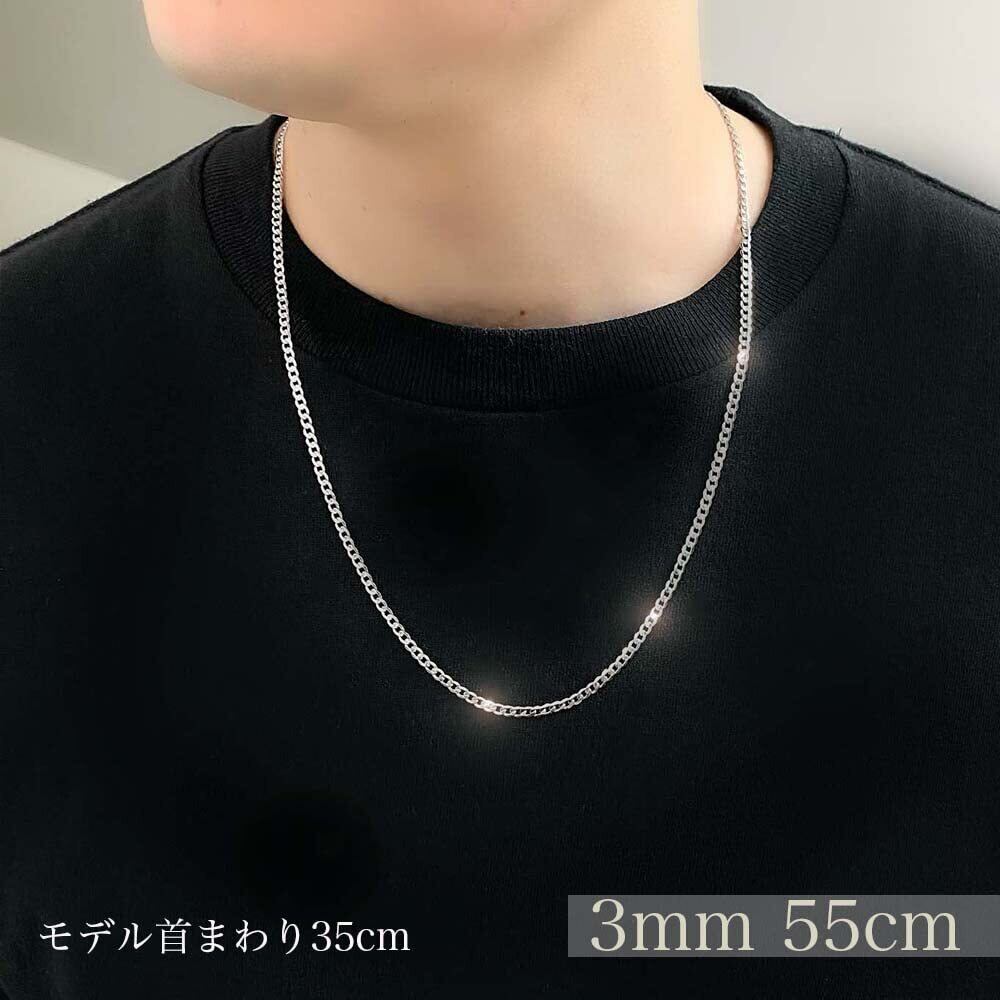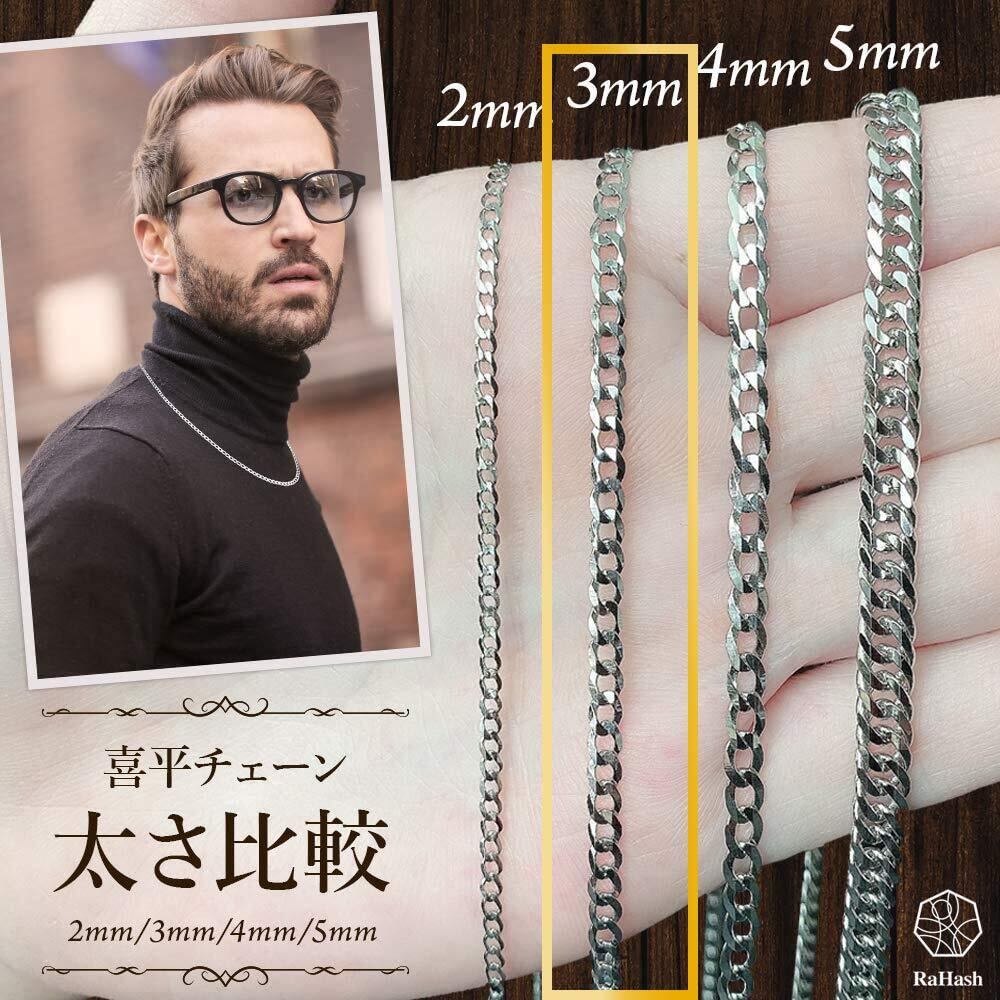 [RaHash] ネックレス チェーン メンズ 喜平 シルバー 925 ブランド [ 銀 6面カット 幅3mm ] [ 55cm ]