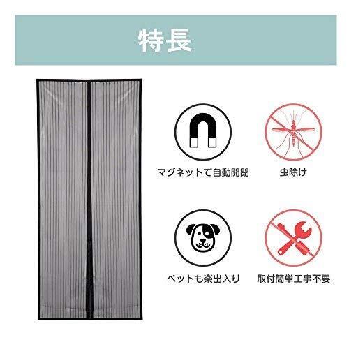 KTJ 玄関カーテン 玄関用網戸 マグネット式 網戸 ドア用カーテン 暖簾 蚊帳 虫除け 蚊取り エコ 節電 取付簡単 ドア/ベランダ/玄関/勝手口 (黒91cm×211cm)