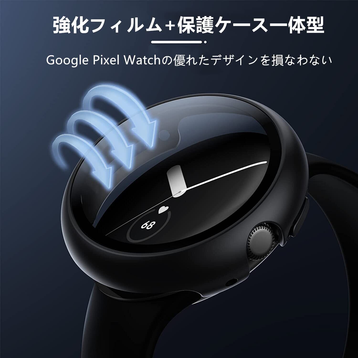 Google Pixel Watch 2/Pixel Watch 1 用 ケース 保護 ガラスフィルム 一体型 PC+TPE材質 二重構造 全面保護 超薄型 高耐久 装着簡単 耐衝撃 対応 Google Pixel Watch 2/1保護ケース 高透過率 指紋防止 傷防止 グーグルピクセルウォッチ カバー (黒)