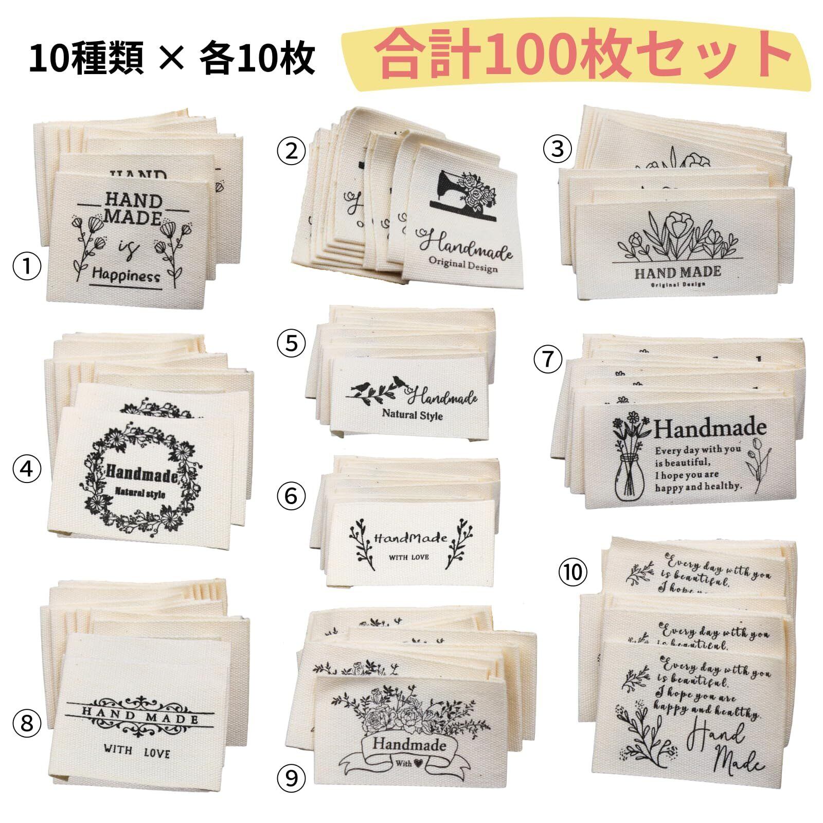 【手作りの温もりを感じるハンドメイド布タグ!】: 「Studio Curtain ハンドメイド布タグ」は、コットン素材を使用した北欧風デザインの布タグです。100枚セットで、10種類のデザインが各10枚ずつ入っており、手芸やDIYプロジェクトにぴったりのアイテムです!