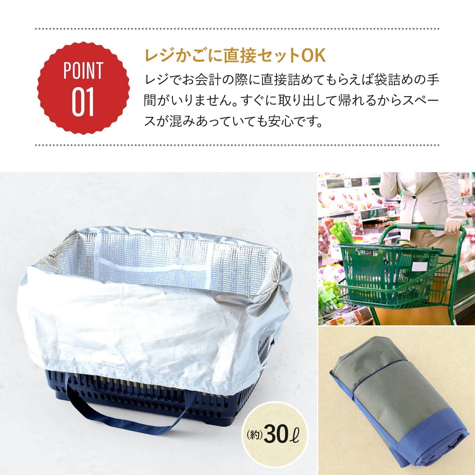 【レジかごにセットできる】 レジかごにセットするタイプの高機能保冷エコバッグです。精算時にかごにセットすると、店員さんが、レジを通した商品を、そのままこのエコバッグに詰めてくれるので、レジ袋への詰め替えの手間がありません。お会計をしたらすぐに持って帰ることができて、手間なし便利。大きさは大容量の30Lで、一般的なスーパーの買い物かごにフィットするサイズです。かご一杯の商品を、肩掛けでらくらく持ち帰ることができます。