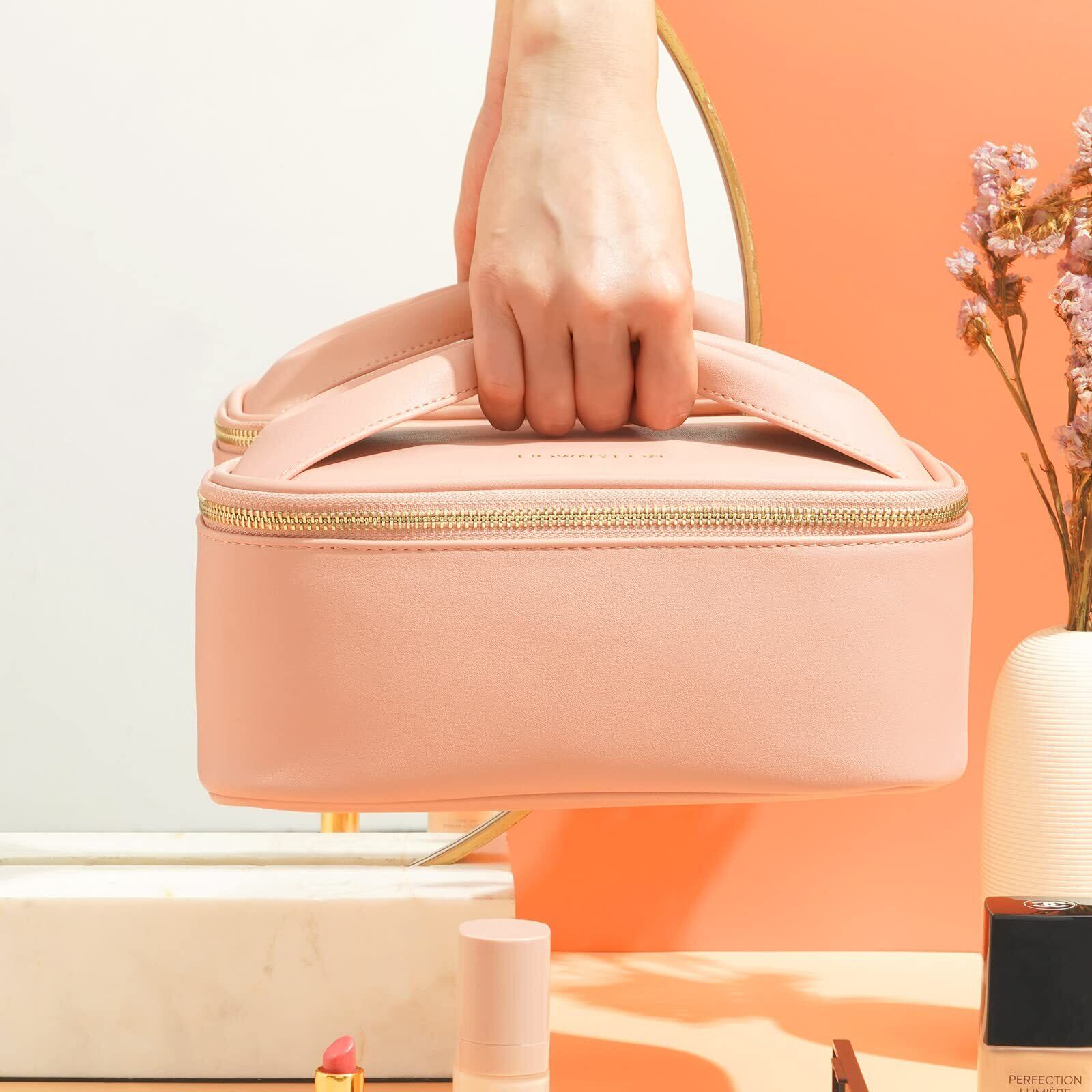 Rownyeon バニティポーチ 化粧ポーチ 大容量 かわいい ブラシ入れ 機能的 リボンハンドル 化粧ボックス 持ち運び 仕切り バニティケース コスメポーチ メイクポーチ コスメケース ミニメイクボックス 化粧品ケース 旅行用 携帯便利 ギフト プレゼント適用 韓国風 ローズダスト | hananoki