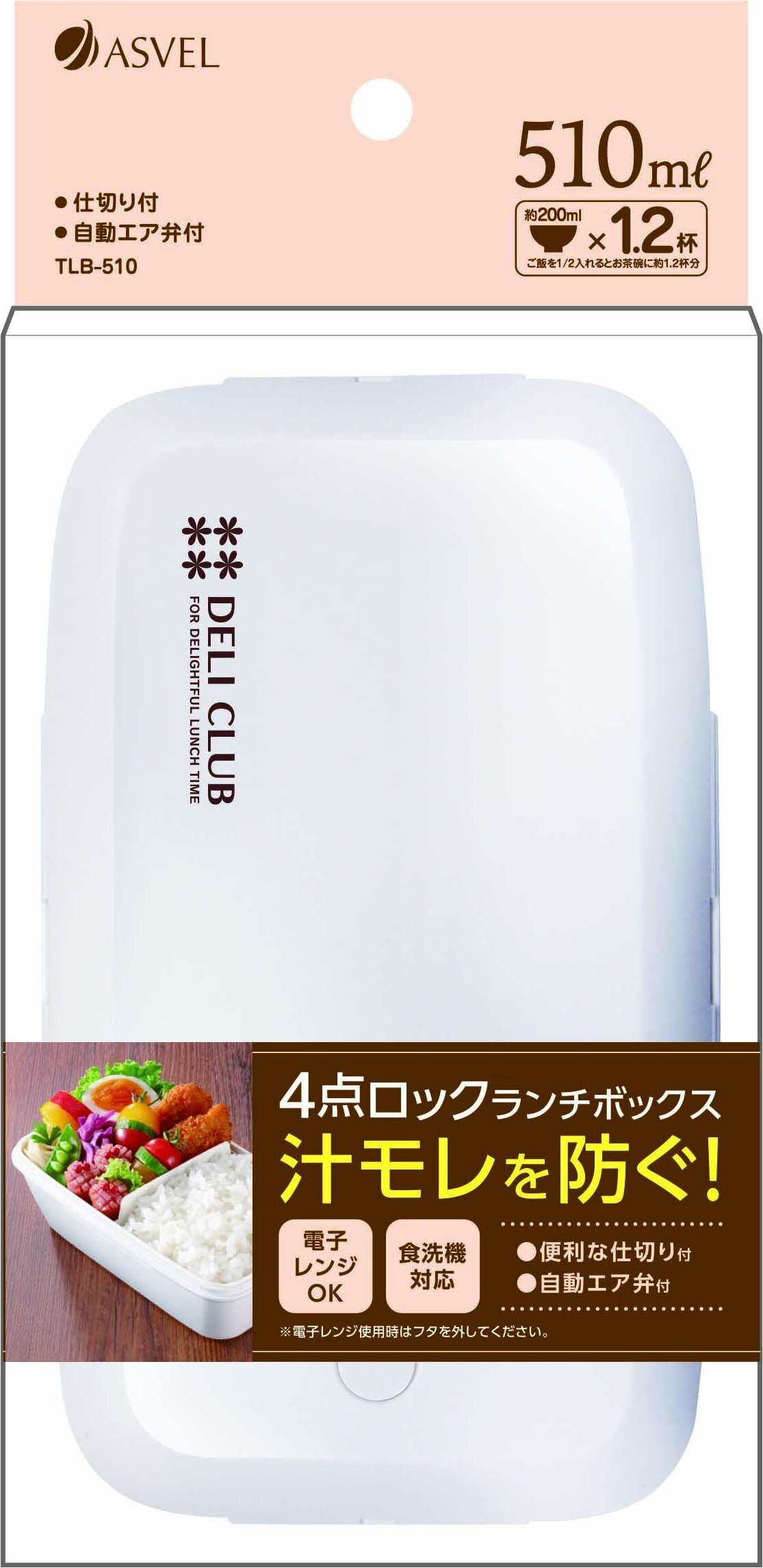アスベル お弁当箱1段510mL デリクラブ TLB-510 ホワイト 3546