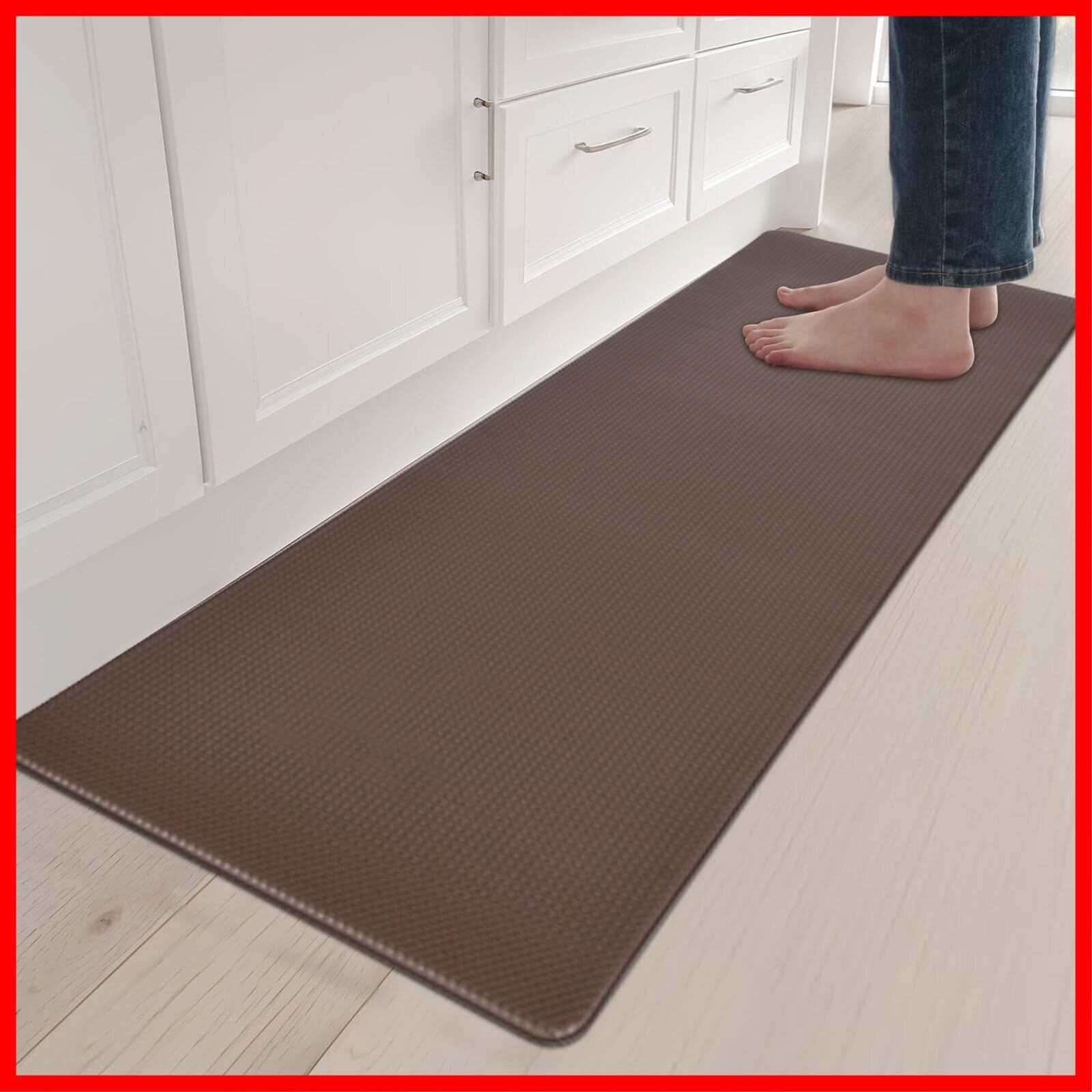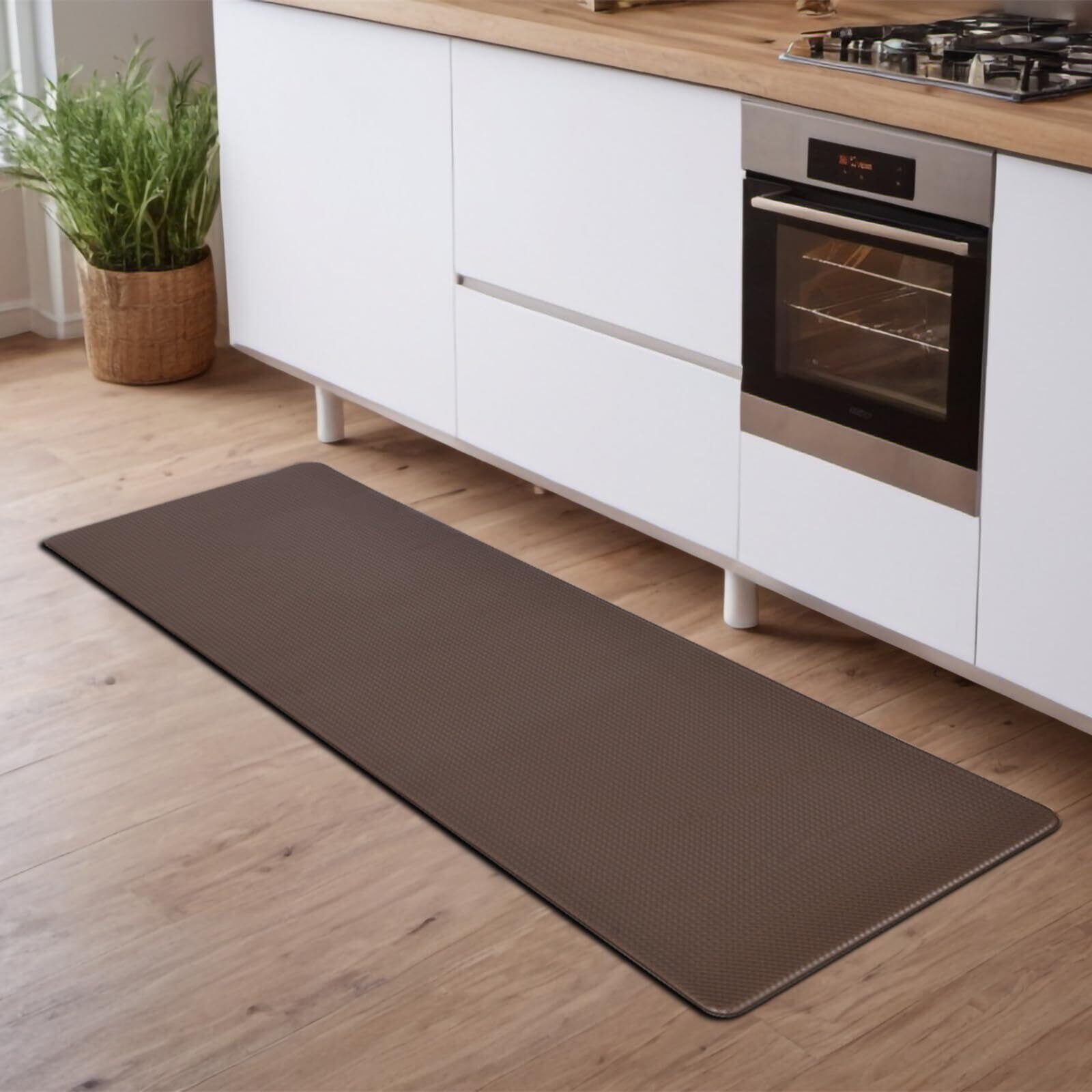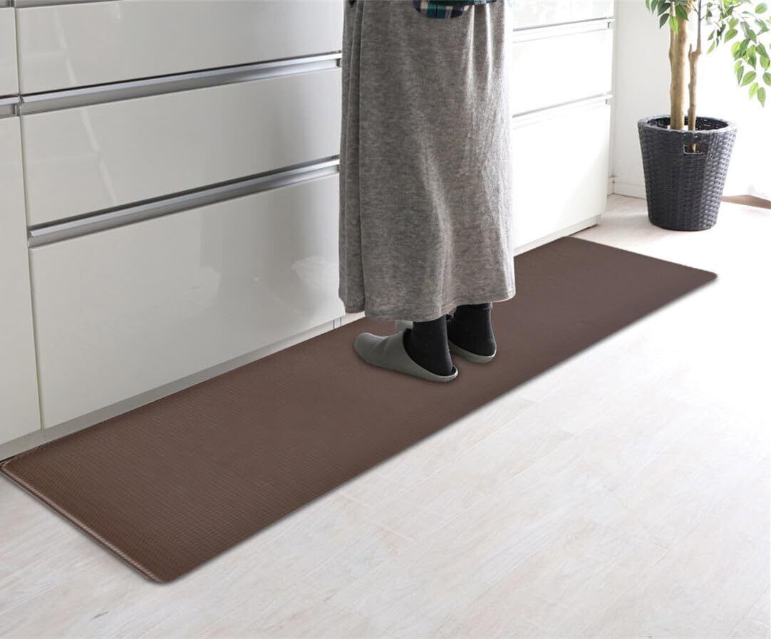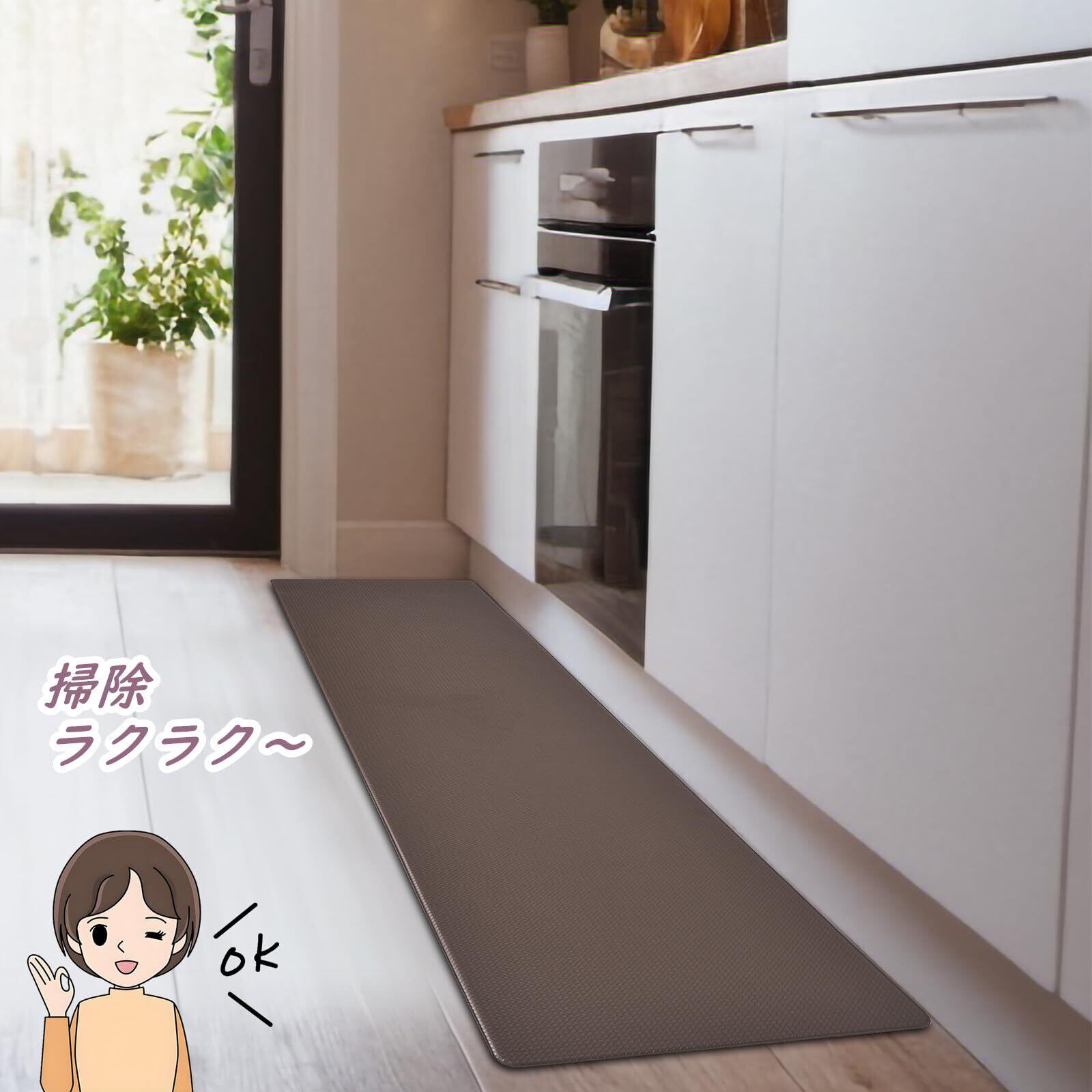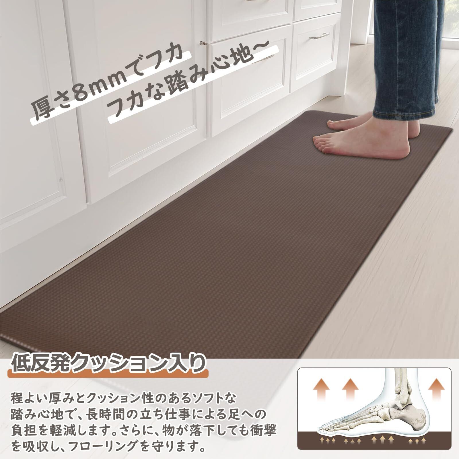 GOFORIT キッチンマット 拭ける 180cm 台所マット 低反発 クッション 8mm はっ水 防汚 洗濯いらず 踏み心地いい ずれない ブラウン