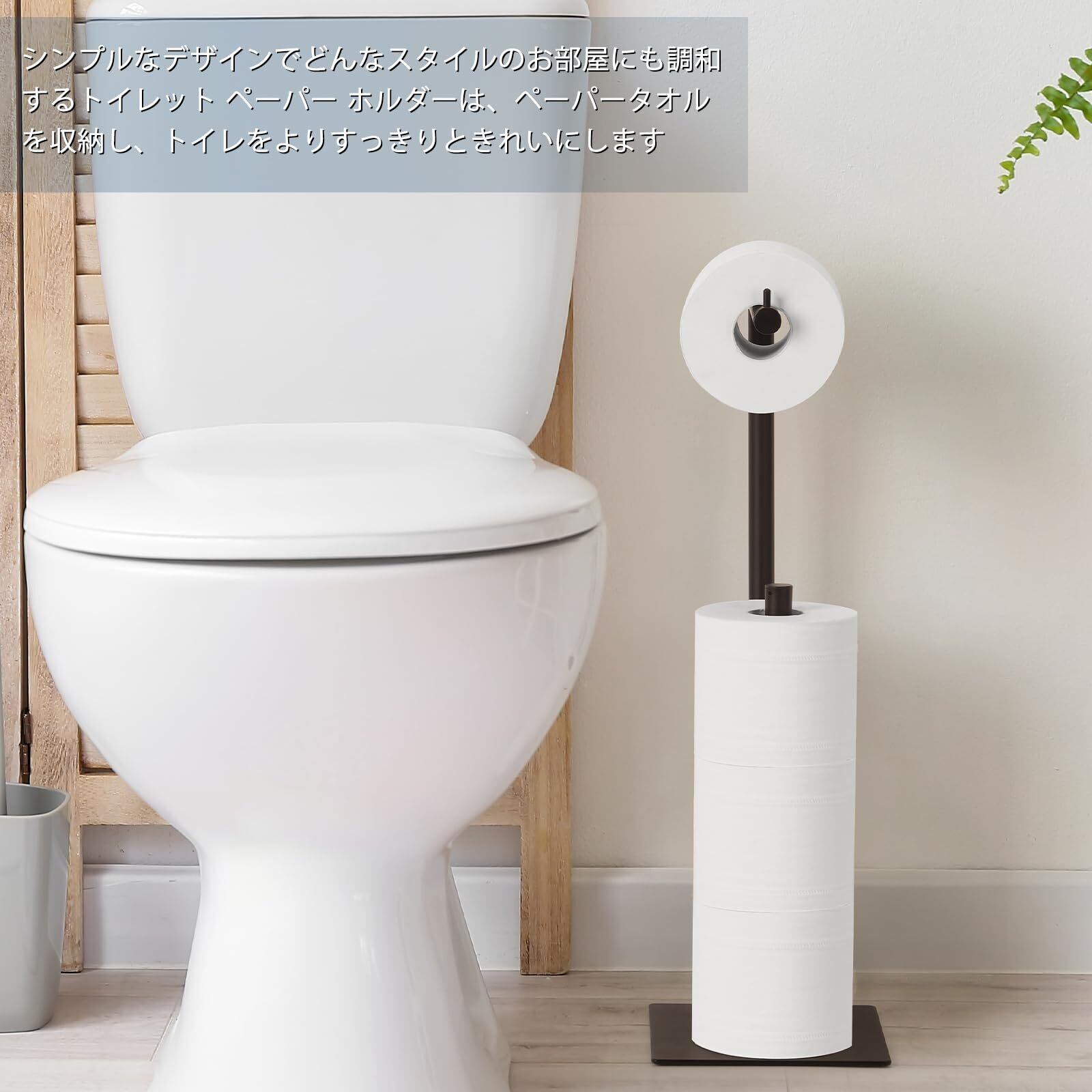 【安定性】トイレットペーパースタンドはしっかりした構造で、簡単には崩れません、ベースは四角形の金属ベースで、トイレットペーパーホルダーは全体的により安定しており、トイレットペーパーを置いたときに倒れません、ご自由にお使いください。