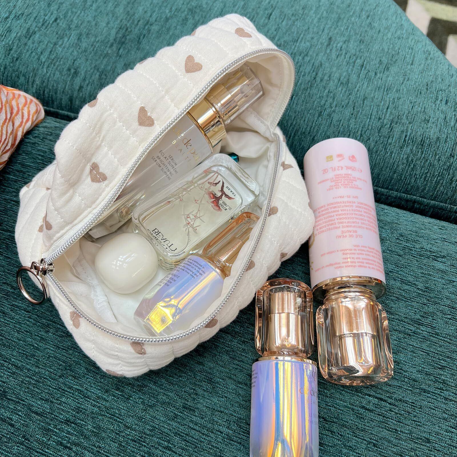 miucatch 立体収納ポーチ 化粧ポーチ コスメポーチ ジッパー付き収納ポーチ 洗面用具ポーチ インナーバッグ 可愛い ハート型 多機能 ポータブル 旅行用品 洗面用具 化粧品収納 女性へのギフト