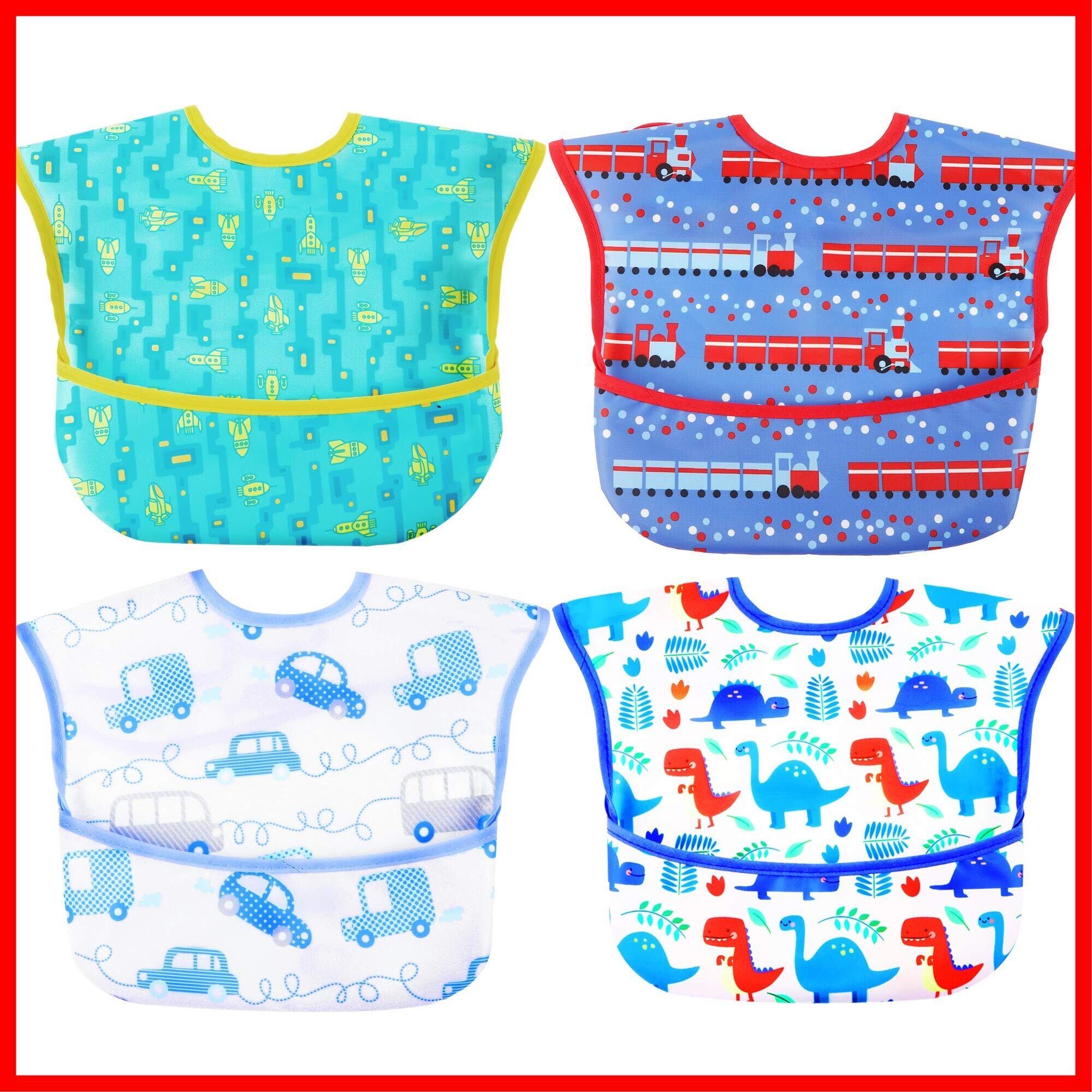 [スリーマッシュルーム] お食事用エプロン ベビー 離乳食 エプロン 3D 立体 保育園エプロン - 防水よだれかけ 赤ちゃん 4枚セット 速乾 洗濯機で洗える 名前を書ける 【保育士推奨】 保育園用 男の子 女の子