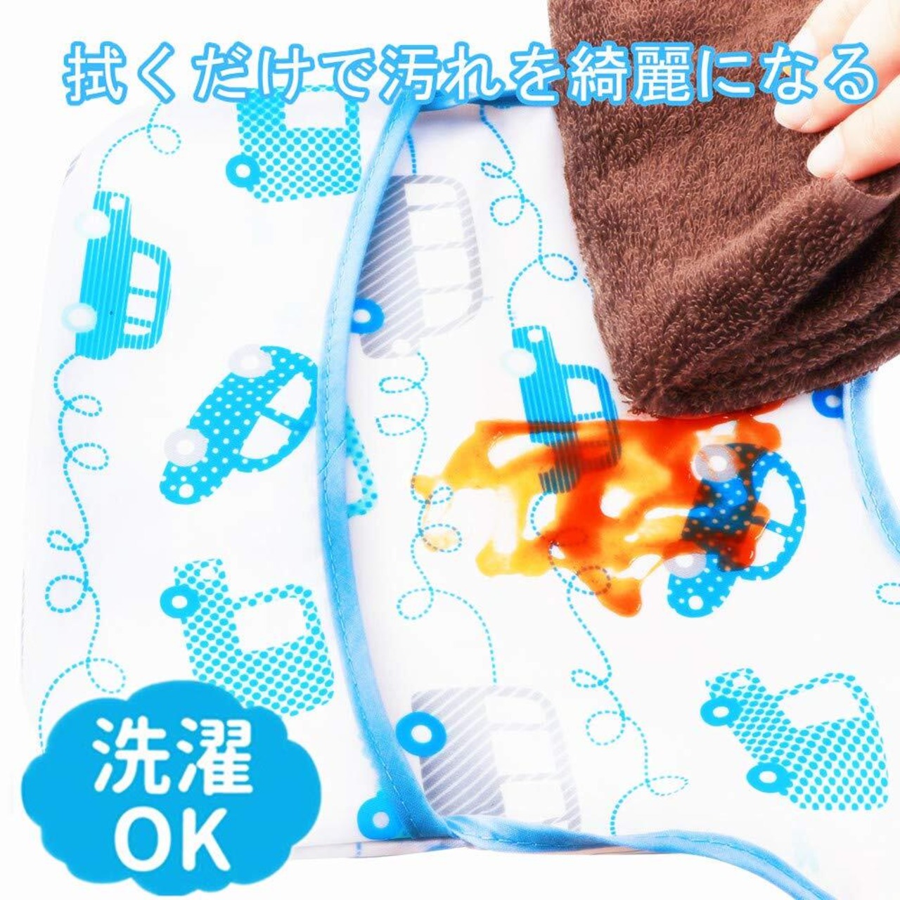 防水食事用エプロン:表側:ポリエステル100%はっ水加工生地 裏地:ラミーネット防水加工【中国製、日本企画】【対象年齢】~4歳【一枚一枚検品済み】※30日商品が到着後30日以内に返品・交換ができる。 油汚れが取れやすい食事エプロン:水につけると、油汚れが浮き、さっと綺麗に取る。台所や外出先でも洗いやすい。 立体的ポケットのベビーエプロン:裏返しタイプの食事エプロン。食べこぼしをしっかりキャッチ way使いの食事スタイ:スタイ型でそのまま使うと離乳食スタイ、ポケットが裏返しすると食事エプロン 保育園用食事エプロン:裏に名前シールのタグが付く。4枚セットで保育園に大活躍。
