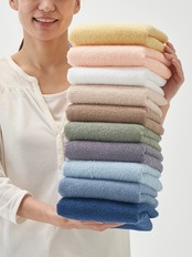 ・“この薄さが"普段使いに最適。軽くて扱いやすく、 使う場所を選ばないので、普段使いのフェイスタオルとしてはもちろん、薄手なので、お風呂などでも絞りやすく、体を洗うボディータオルとしてもお使いいただけます。