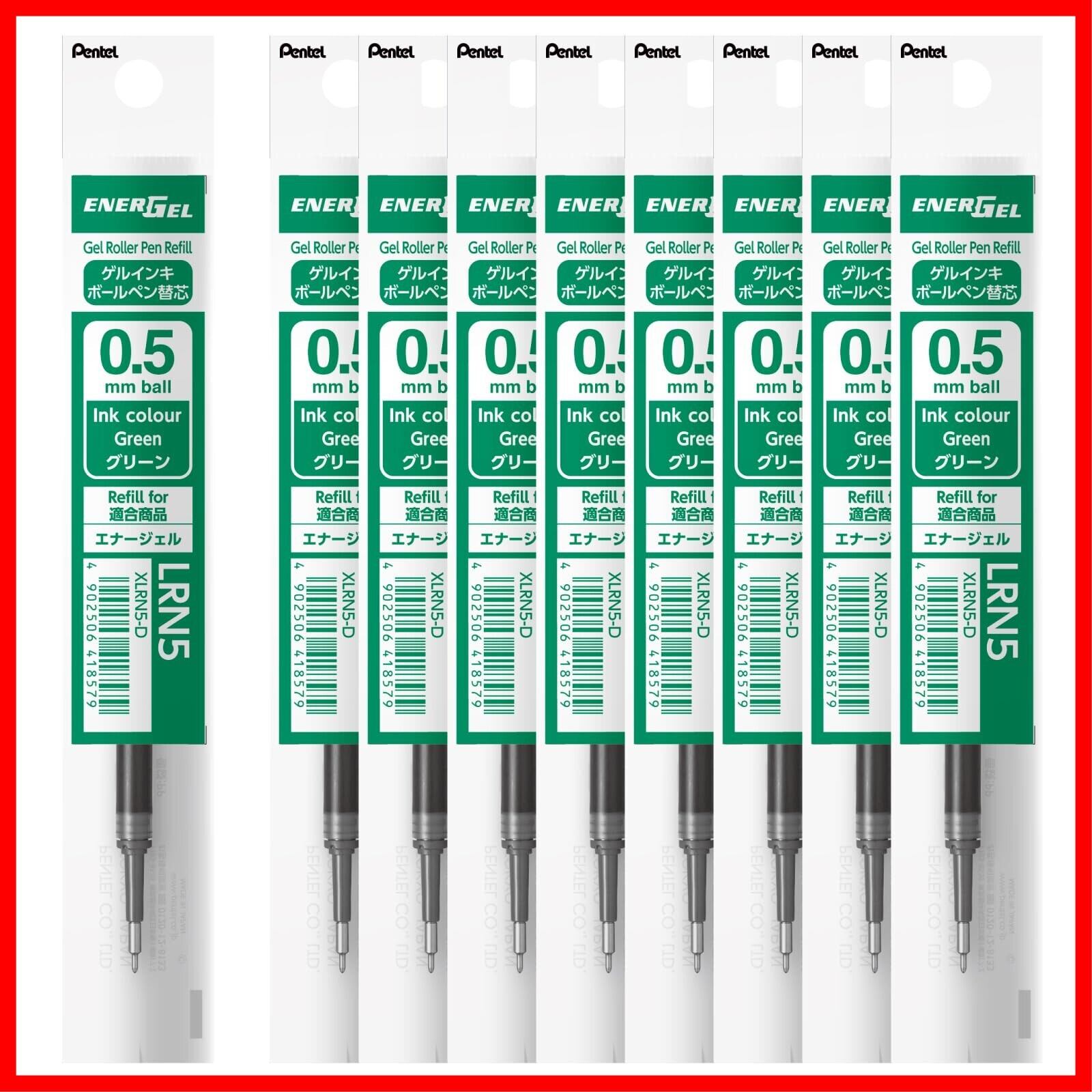 ぺんてる ボールペン替芯 エナージェル 0.5mm グリーン 10本 XLRN5-D(10)