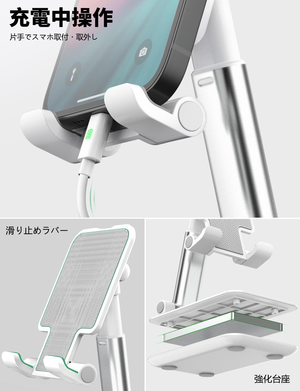 ● 特徴:高度調整可能、コンパクトおりたたみデザイン、滑り止め機能、広範なデバイス対応