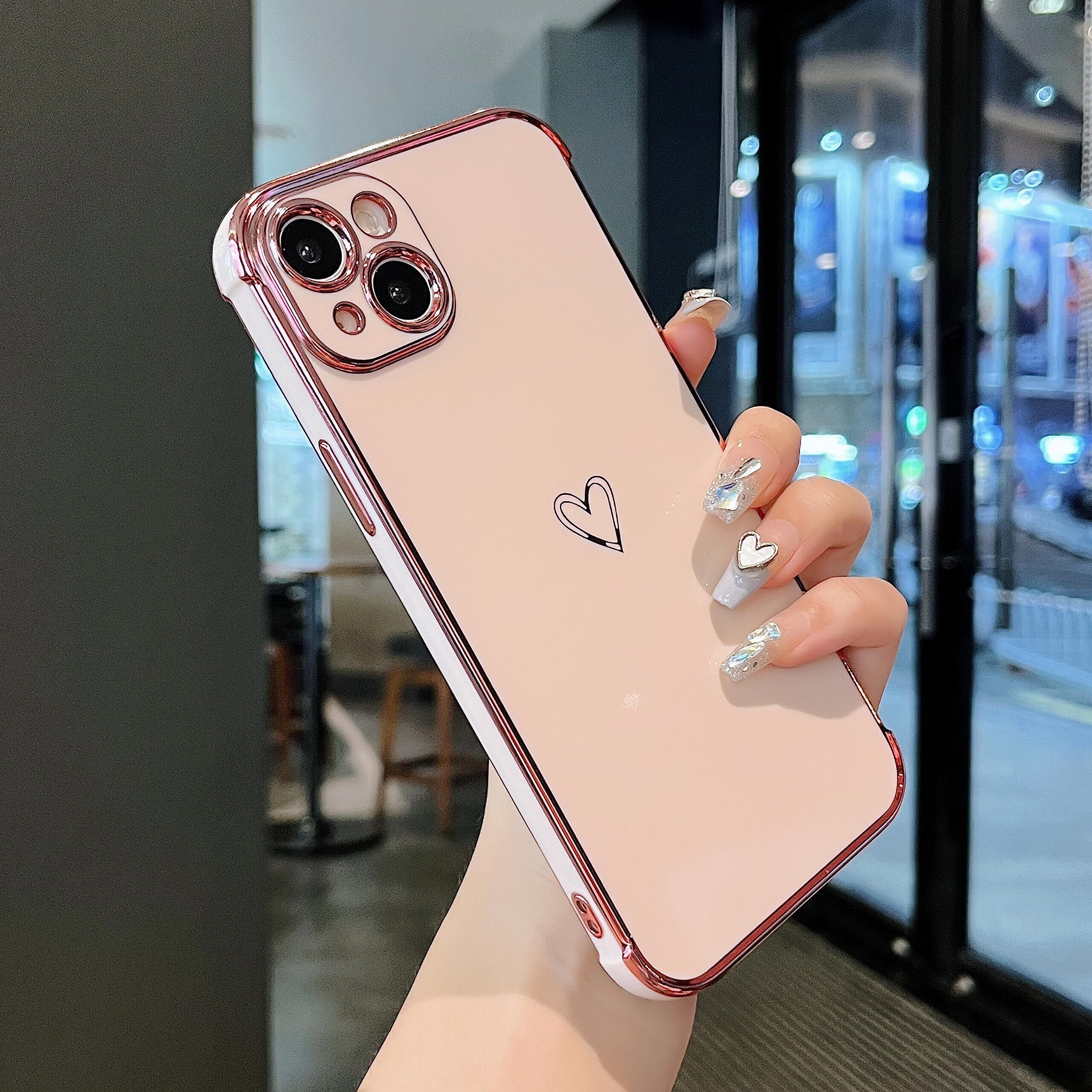 ZTOFERA iPhone 15 用 ハートケース iPhone 15 ケース 柔軟な TPU シリコン スマホケース メッキ加工 ソフト 軽量 耐衝撃 おしゃれ 韓国 可愛い アイフォン 15 ケース 女子 女性 心パターン 携帯電話カバー ワイヤレス充電対応 (ピンク)