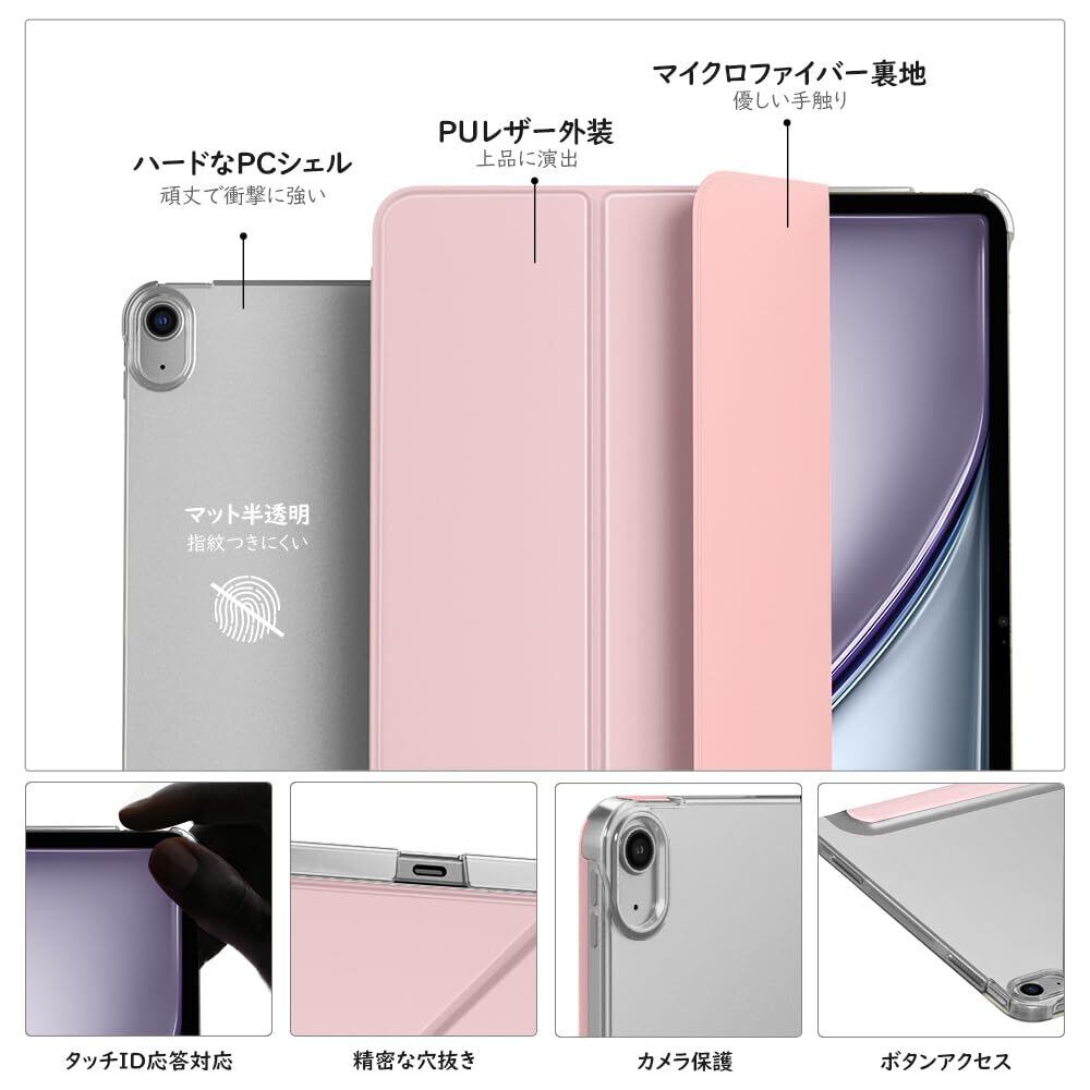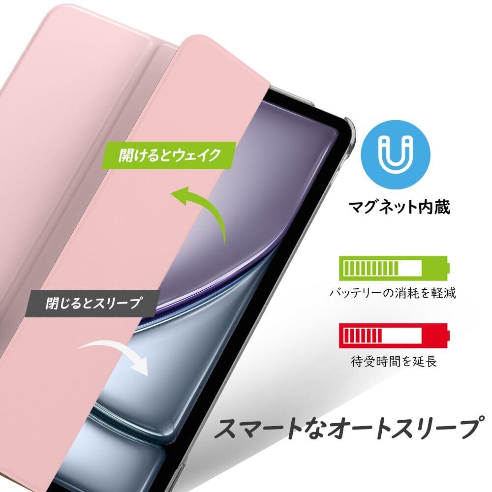 MoKo iPad Air 13インチ 2025/2024 ケース iPad Air 13インチ(M3/M2) 専用手帳型カバー オートスリープ機能 Pencil Pro取付対応 三つ折りスタンド PUレザー外装 裏地マイクロファイバー LightPink