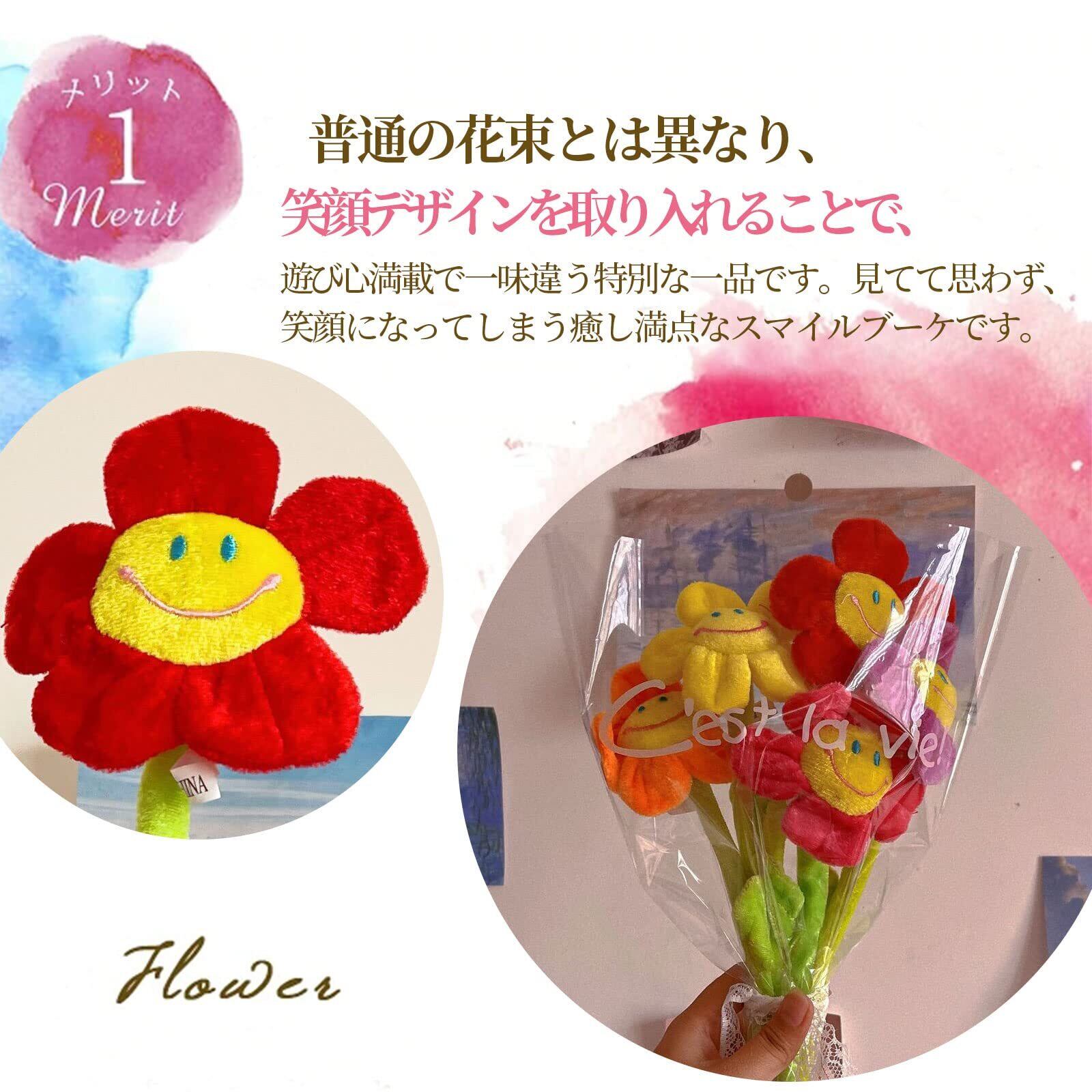 MAIBED フラワー 笑顔 韓国風 ぬいぐるみ花束 5枚セット ブーケ 枯れない花舞 花 フラワーブーケ 造花 贈り物 ギフト お見舞い プレゼント 誕生日 記念日 母の日 女性 彼女 友達 お祝い 入学式 卒業式 バレンタインデー (F)