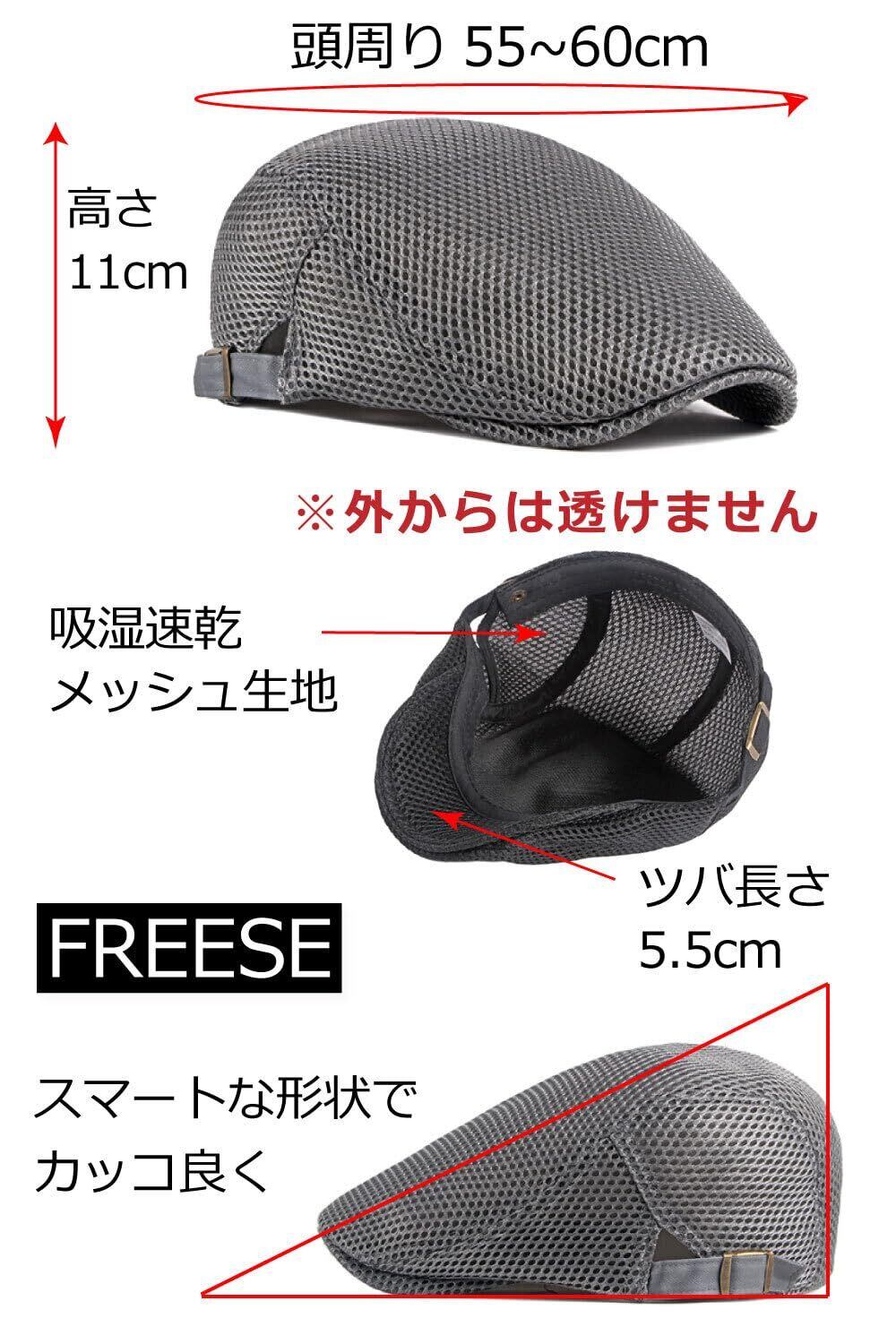 [FREESE] ハンチング 帽子 キャスケット キャップ UVカット 春夏 吸湿速乾 メッシュ 通気性 涼しい メンズ