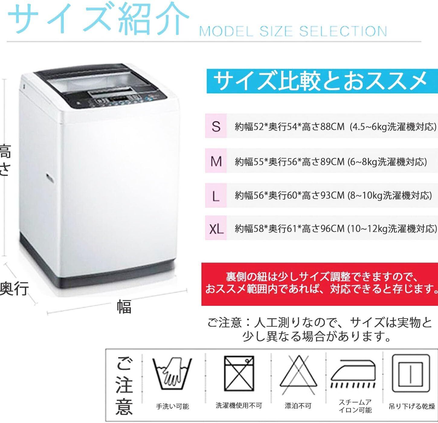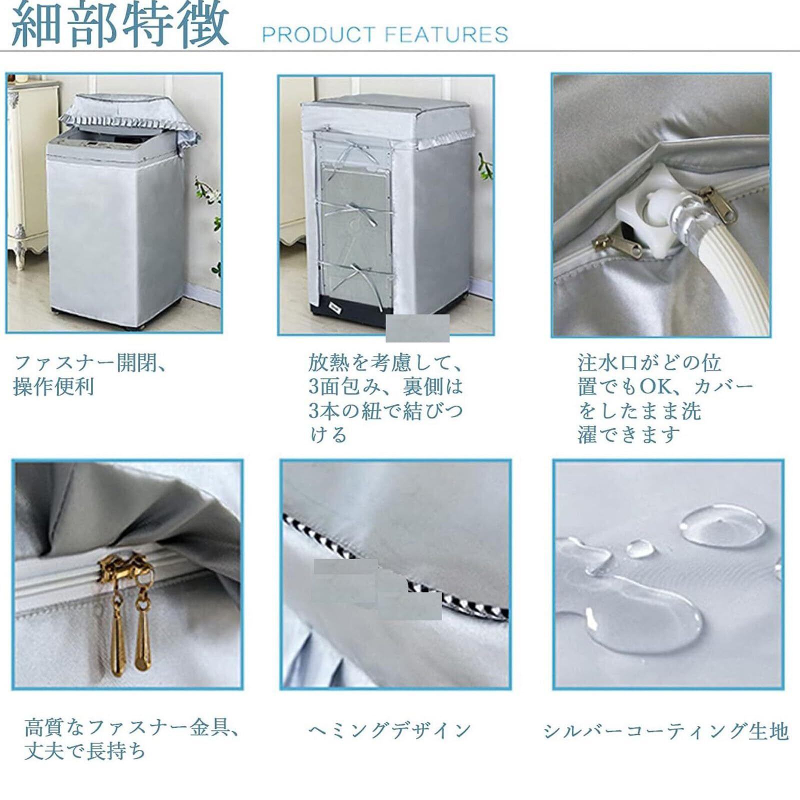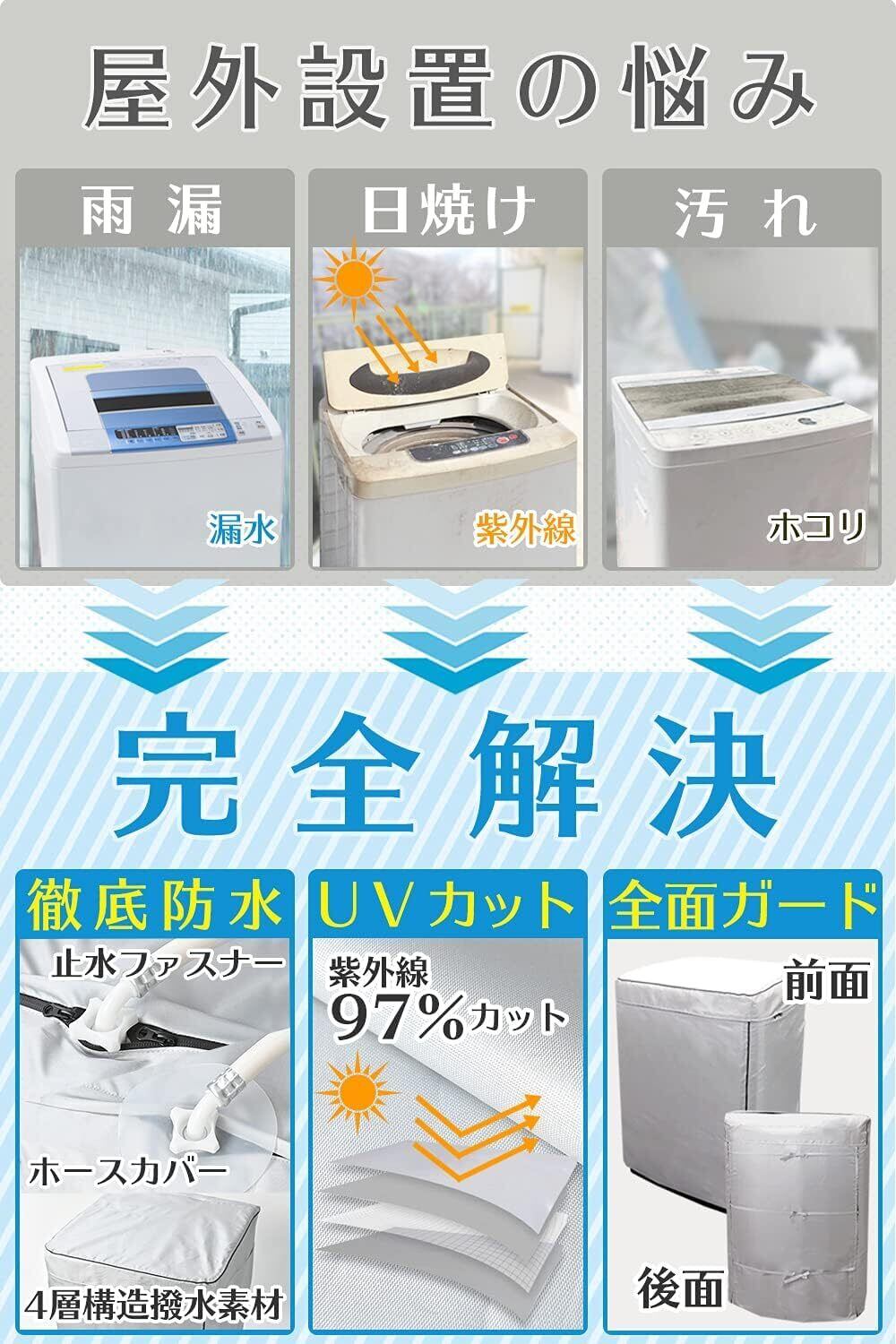 【新しいデザイン】アップグレードされ洗濯機カバーは3面包んでいて、後ろは3本の紐で結びつけられて、製品全体を固定しています。3面デザインにより通気性があり、放熱もしやすくなります。