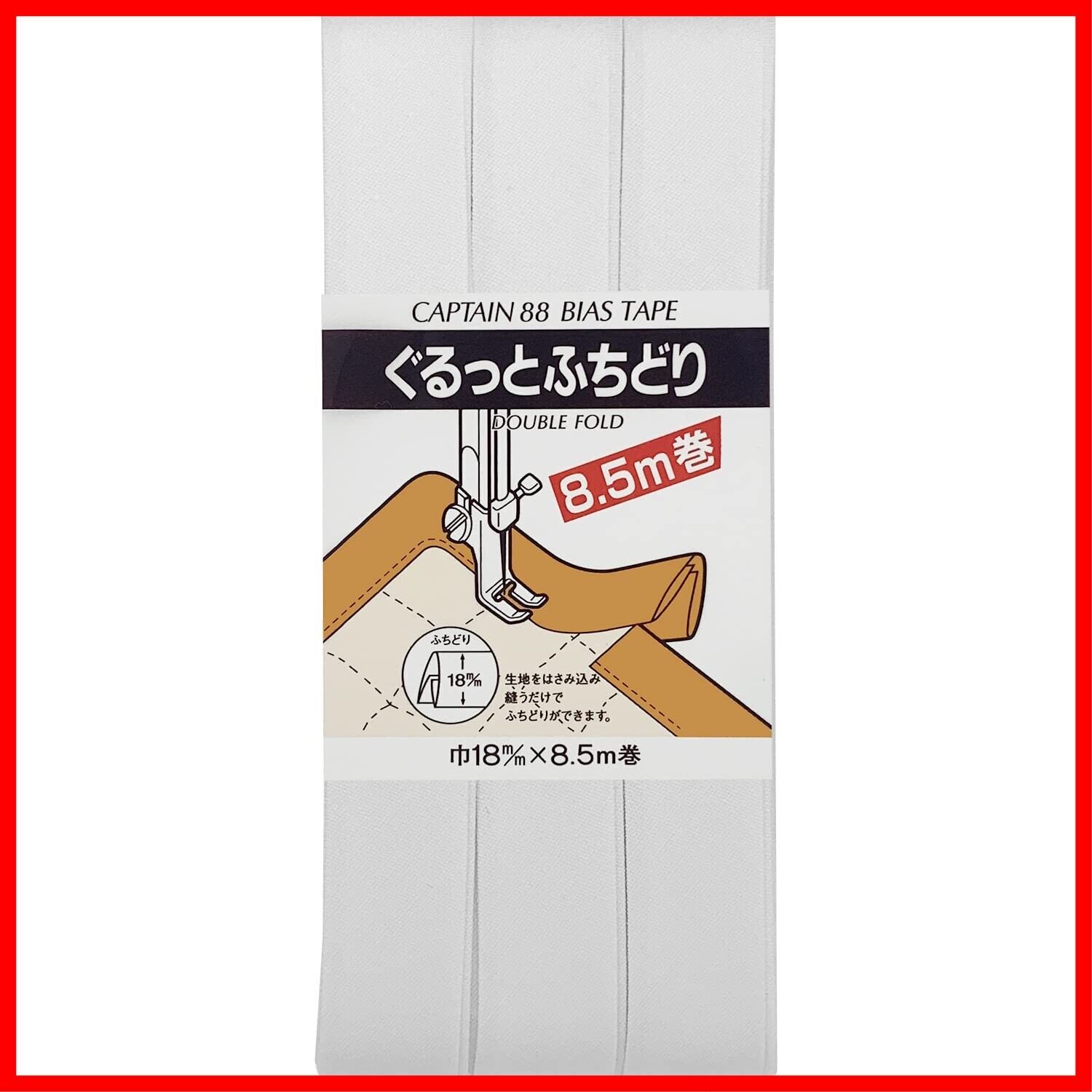 CAPTAIN88 キャプテン ぐるっと ふちどり バイアステープ 18mm幅×8.5m巻 #501 白 CP33